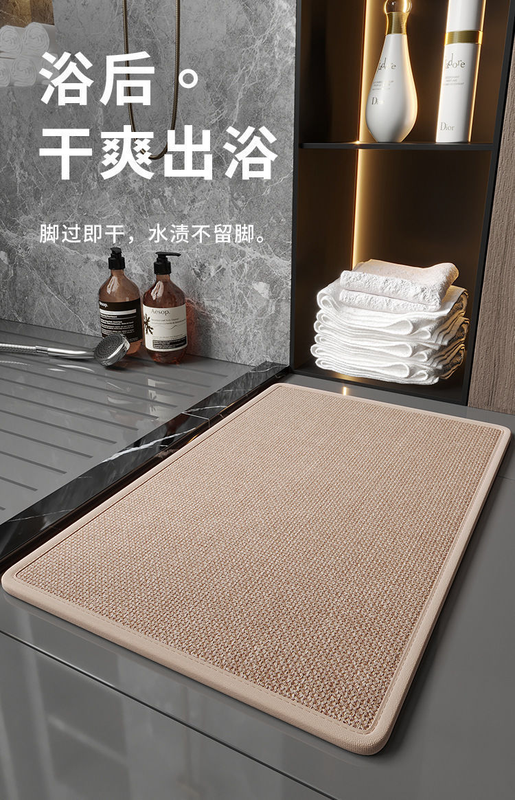 고급 린넨 규조토 진흙 바닥 매트, 욕실 욕실 강력한 흡수성 미끄럼 방지 발 매트, 얼룩 방지 및 내마모성 욕조 카펫스토어 가기