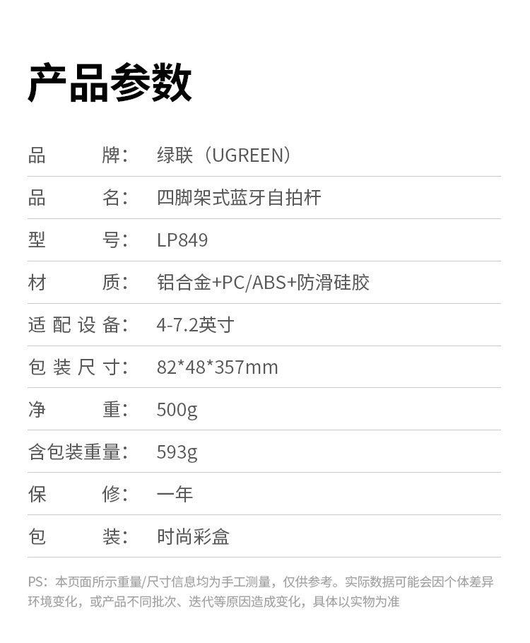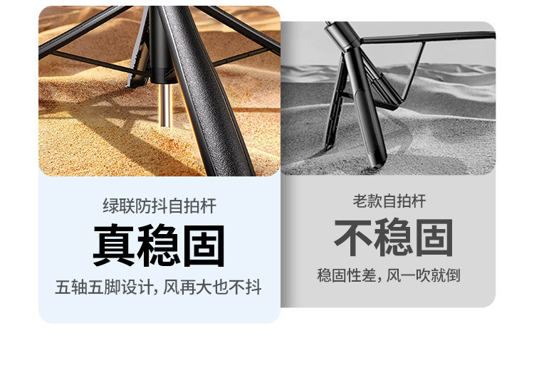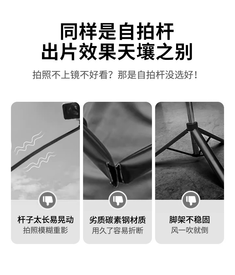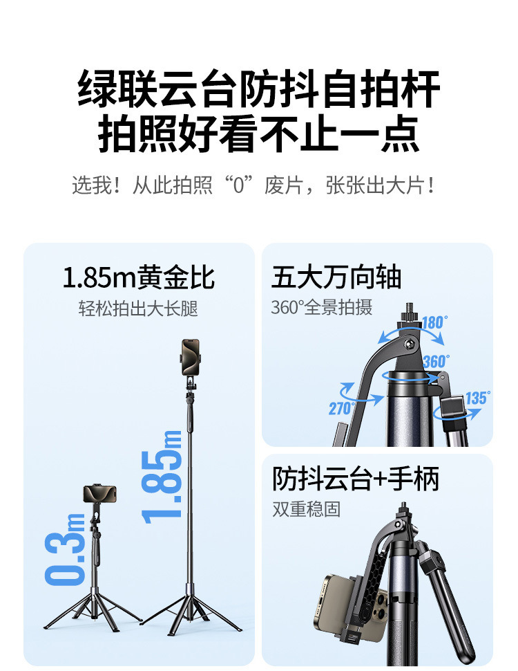 • [1.85m 플래그십 모델] 흔들림 방지 짐벌 + 안정적인 핸들 - [360도 파노라마 촬영, 다양한 장면에 적합한 내장형 바닥 못]
