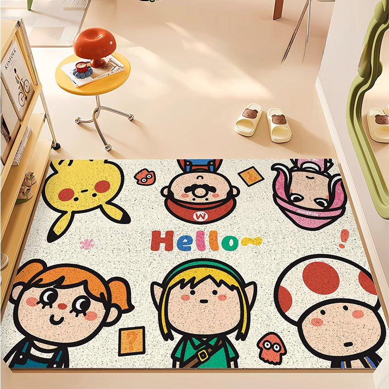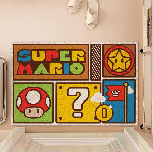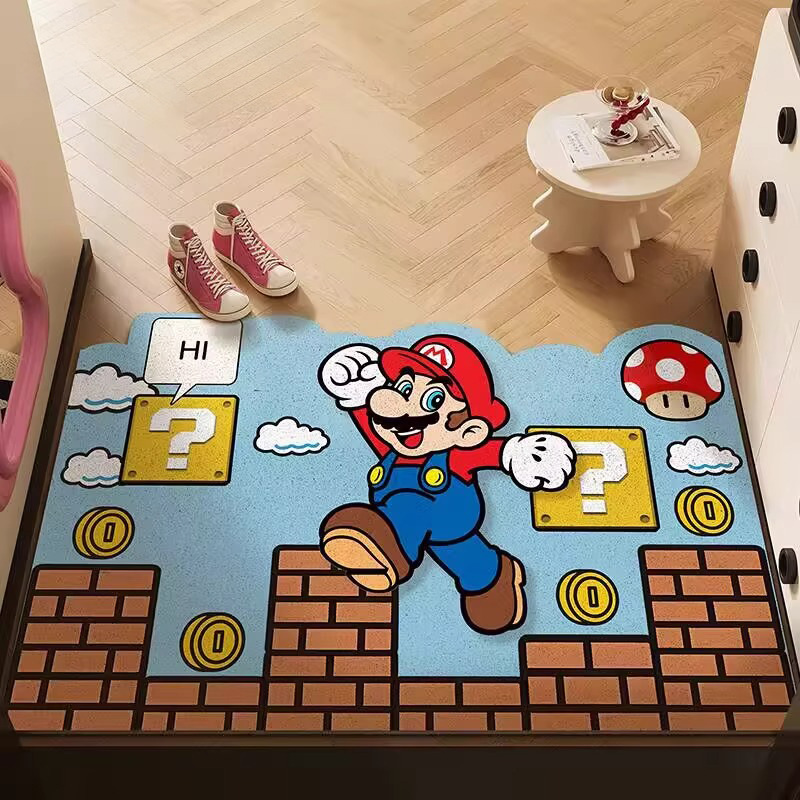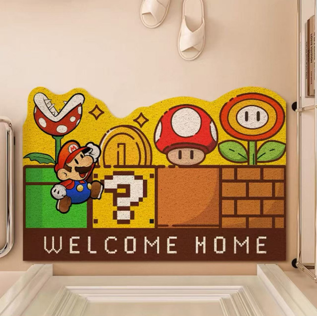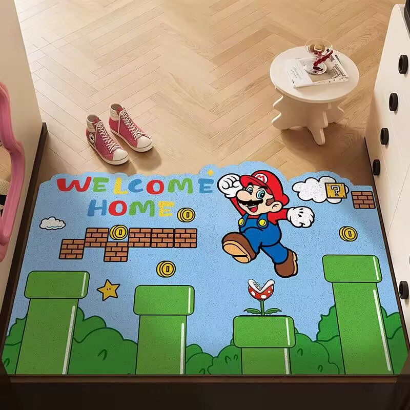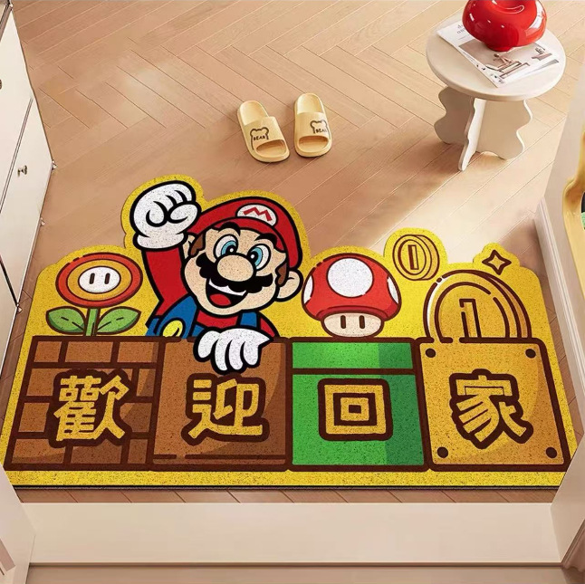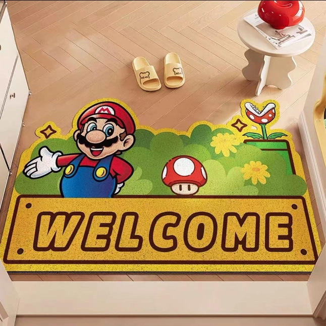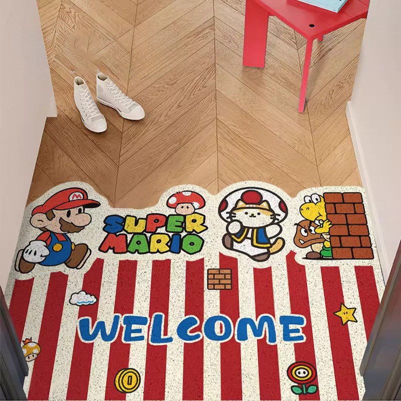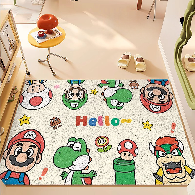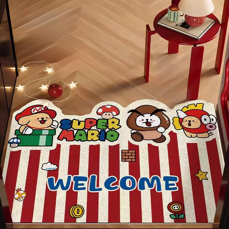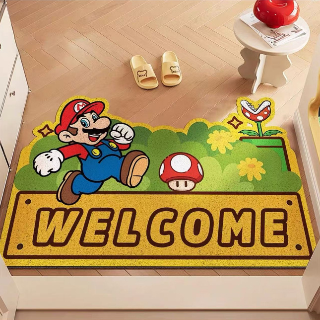 재미있는 마리오 현관문 바닥매트, 집 현관문 스크래퍼, 절단 가능한 발매트, 미끄럼 방지 와이어 링 바닥매트