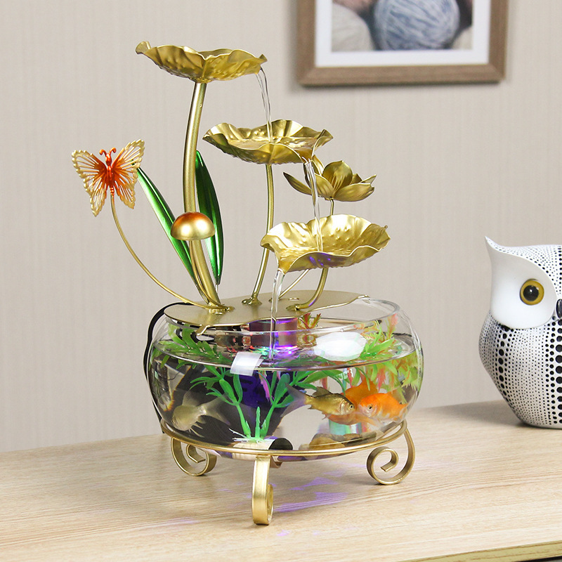 라이브 방송 인기 데스크탑 홈 유리 수조 흐르는 물 장식품 사무실 거실 입구 풍경 분수 장식