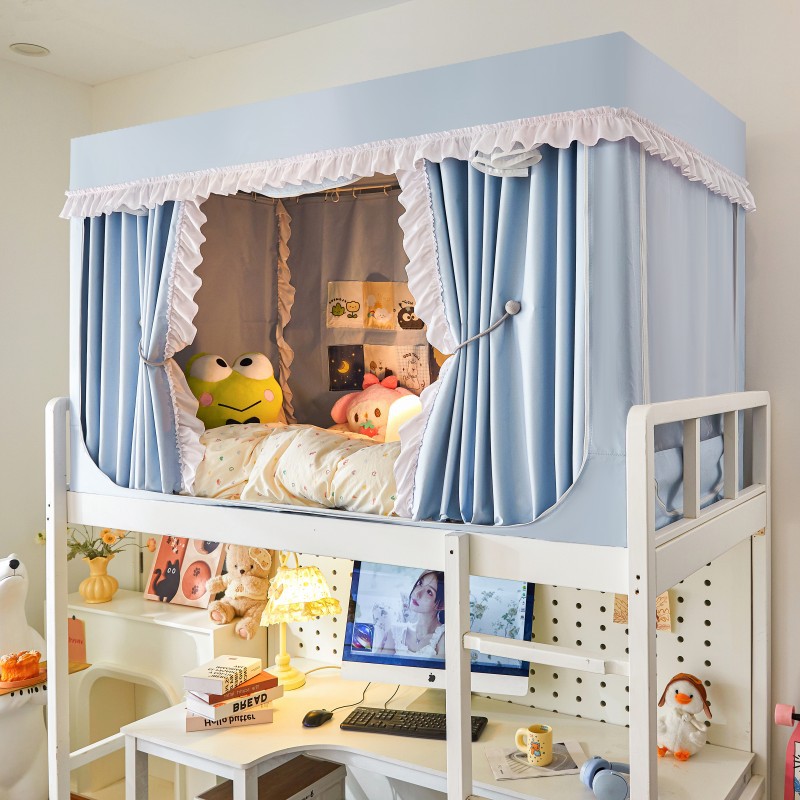A급 학생 기숙사 침대 커튼 일체형 모기장, 단색 레이스, 강력한 차광, 친환경 차광, 이층 침대 커튼