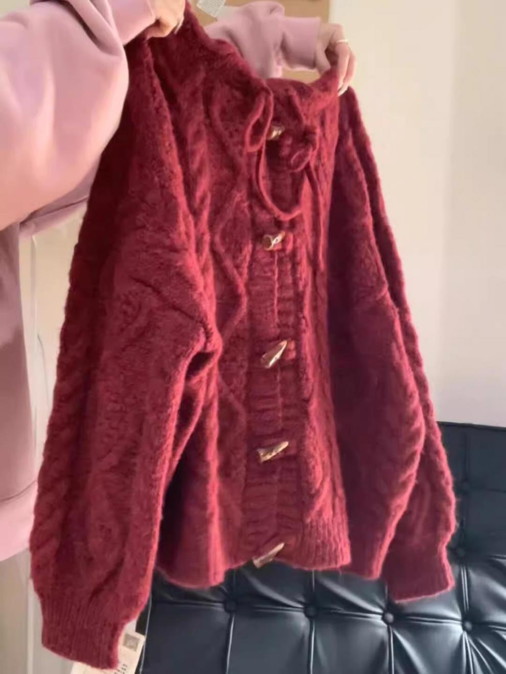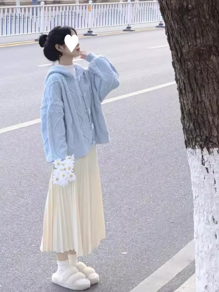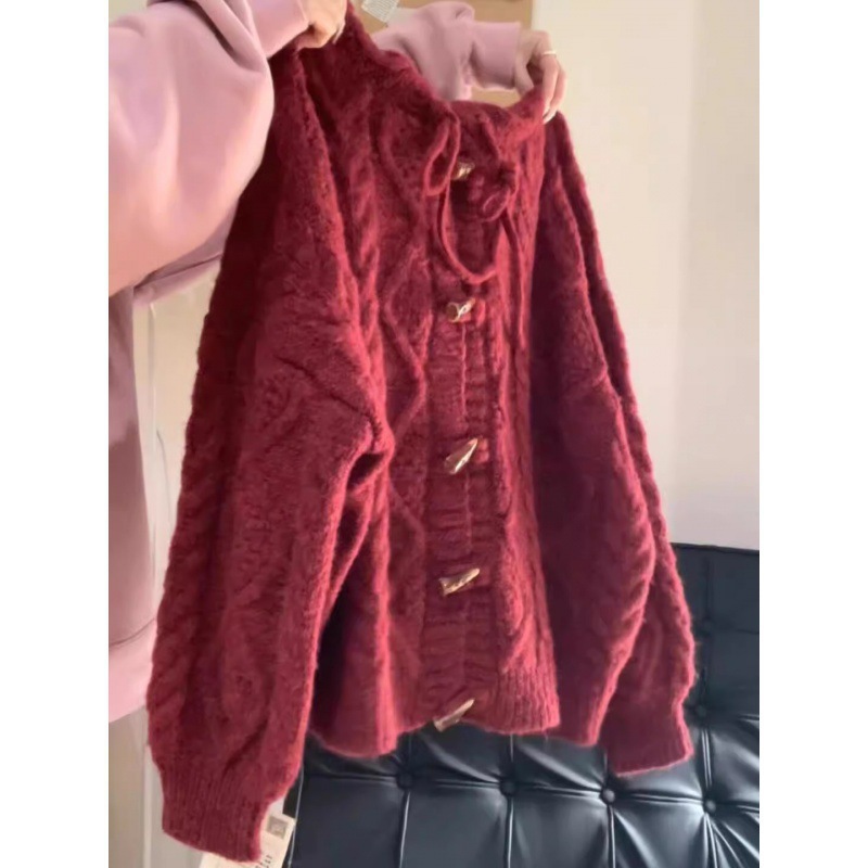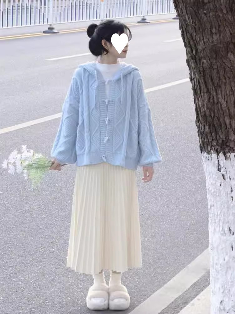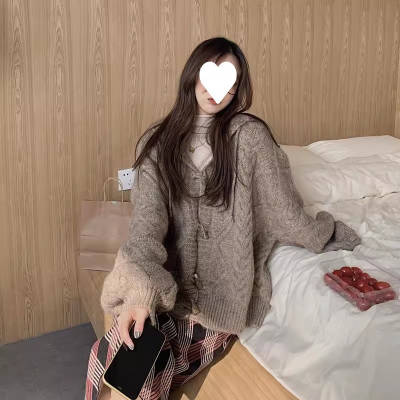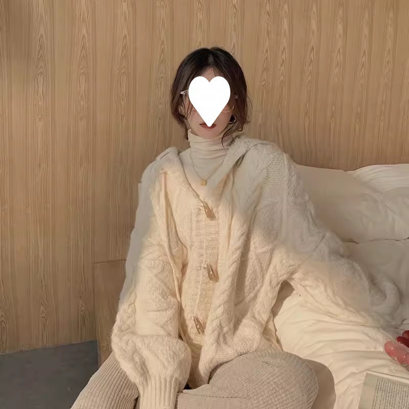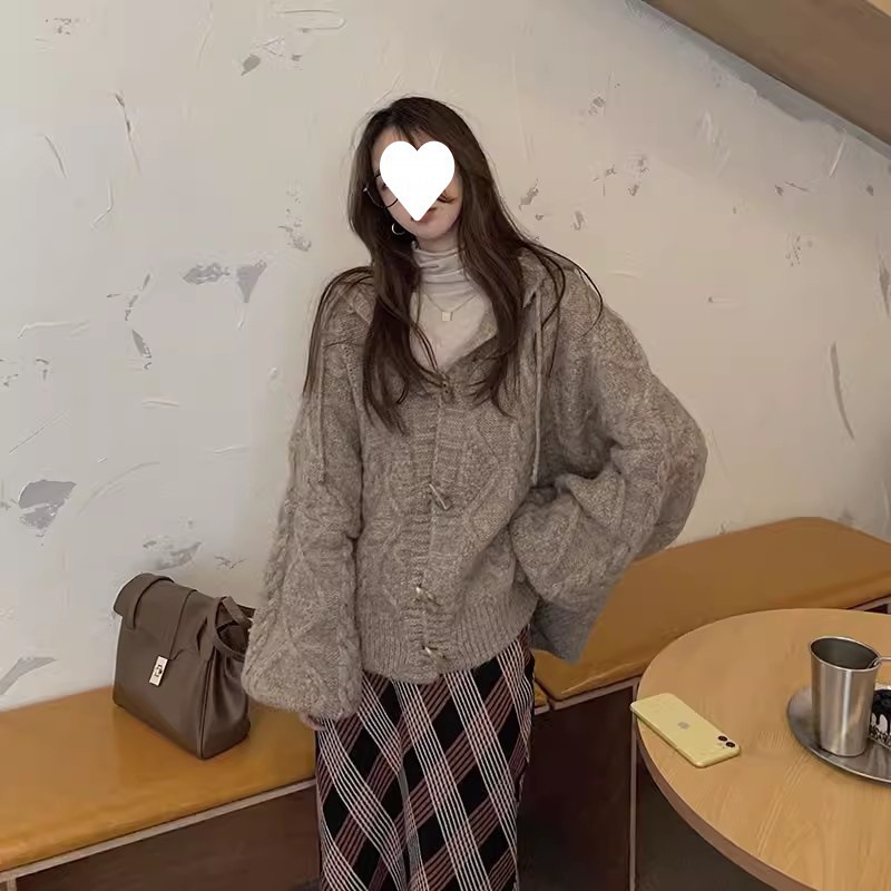 2025 일본 복고풍 후드 래브라도 버튼 니트 카디건 여성 가을, 겨울 새로운 스타일 느슨한 다용도 스웨터 재킷스토어 가기