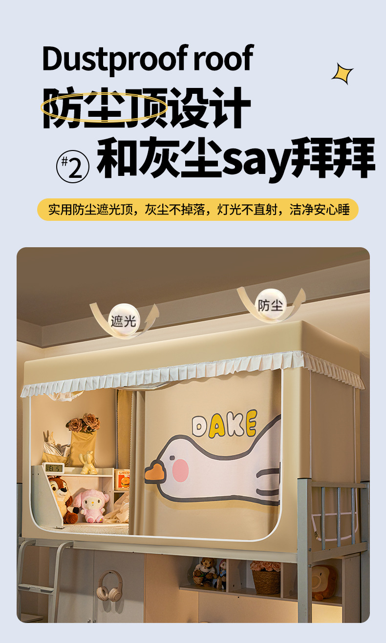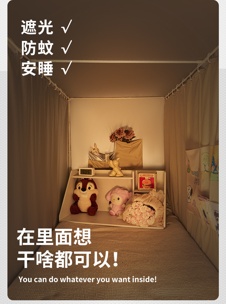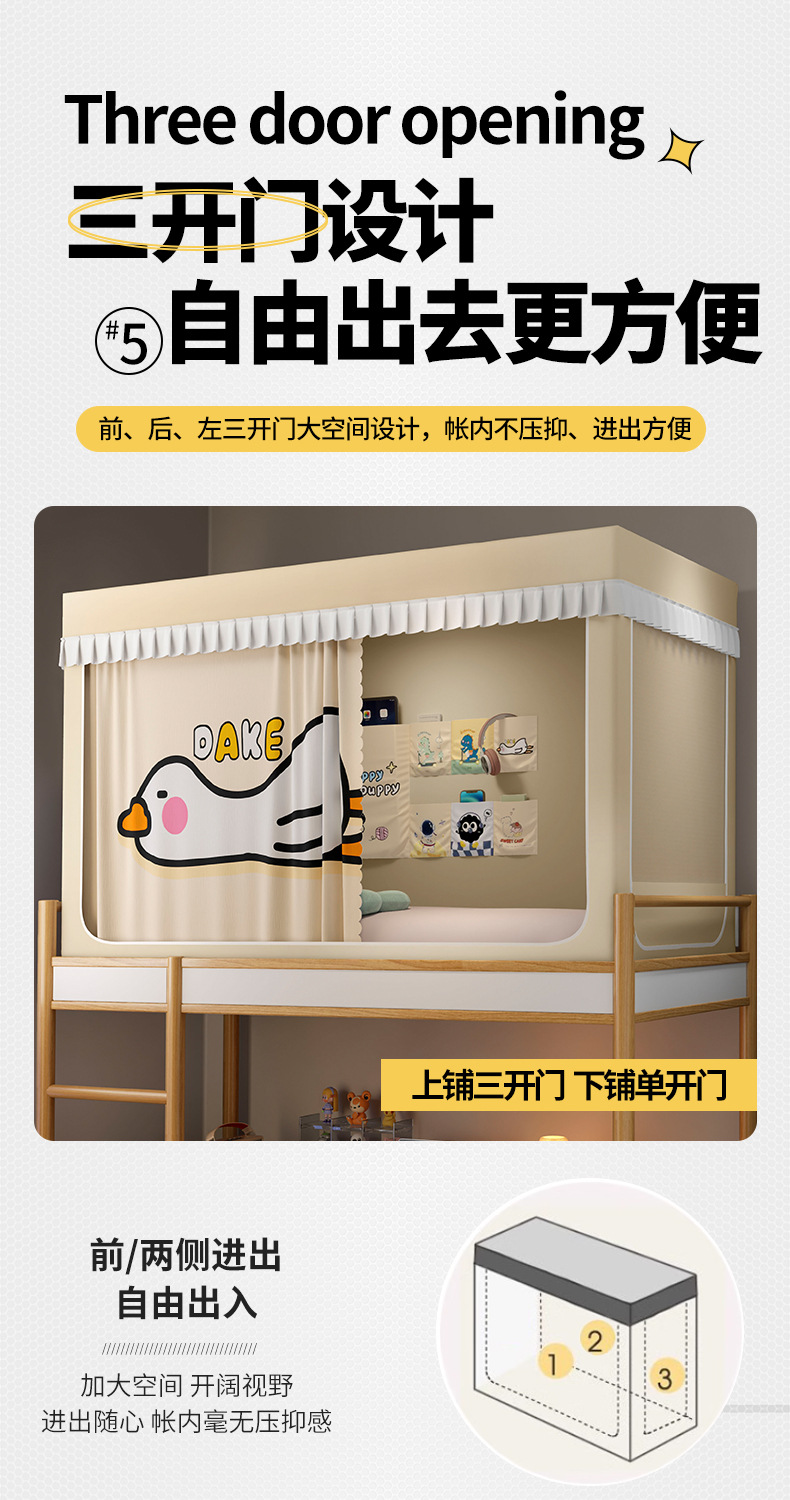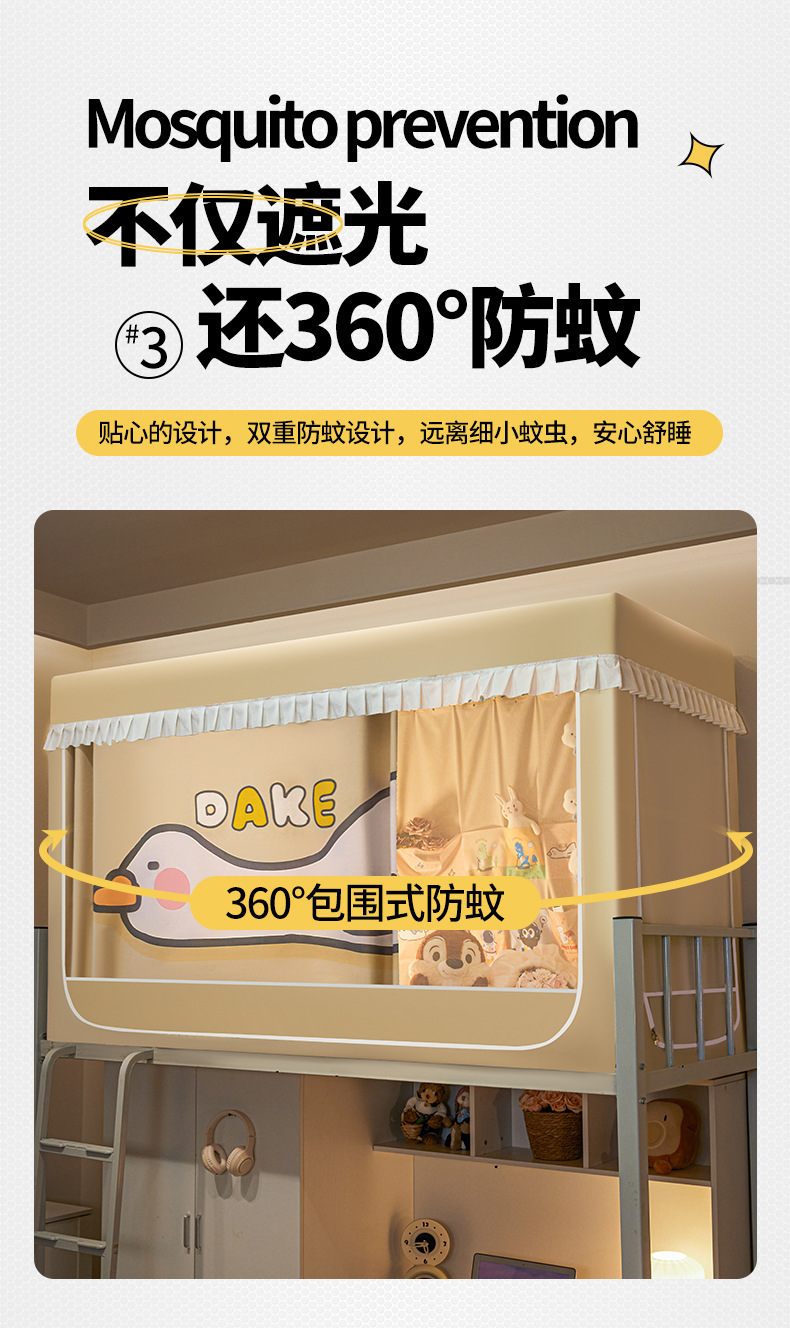 2025년 신입생 기숙사 강력한 차광 모기장 일체형 침대 커튼 설치가 필요 없으며 침실 이층 침대에 보편적입니다.스토어 가기