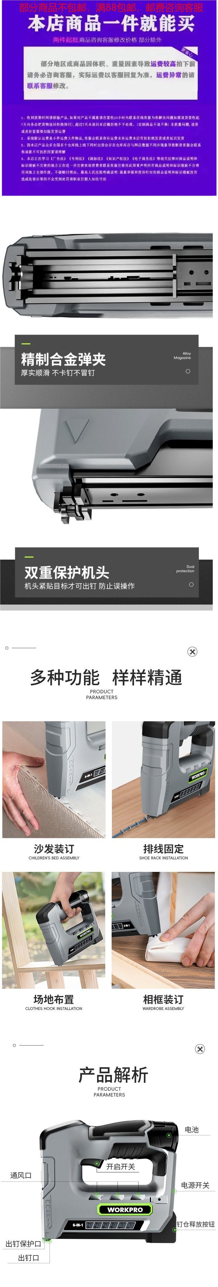 • 6-in-1 [F15 강력한 12V 단일 배터리] 무료 4,000개 못 - 긴 배터리 수명 [지속적인 못 박기]
