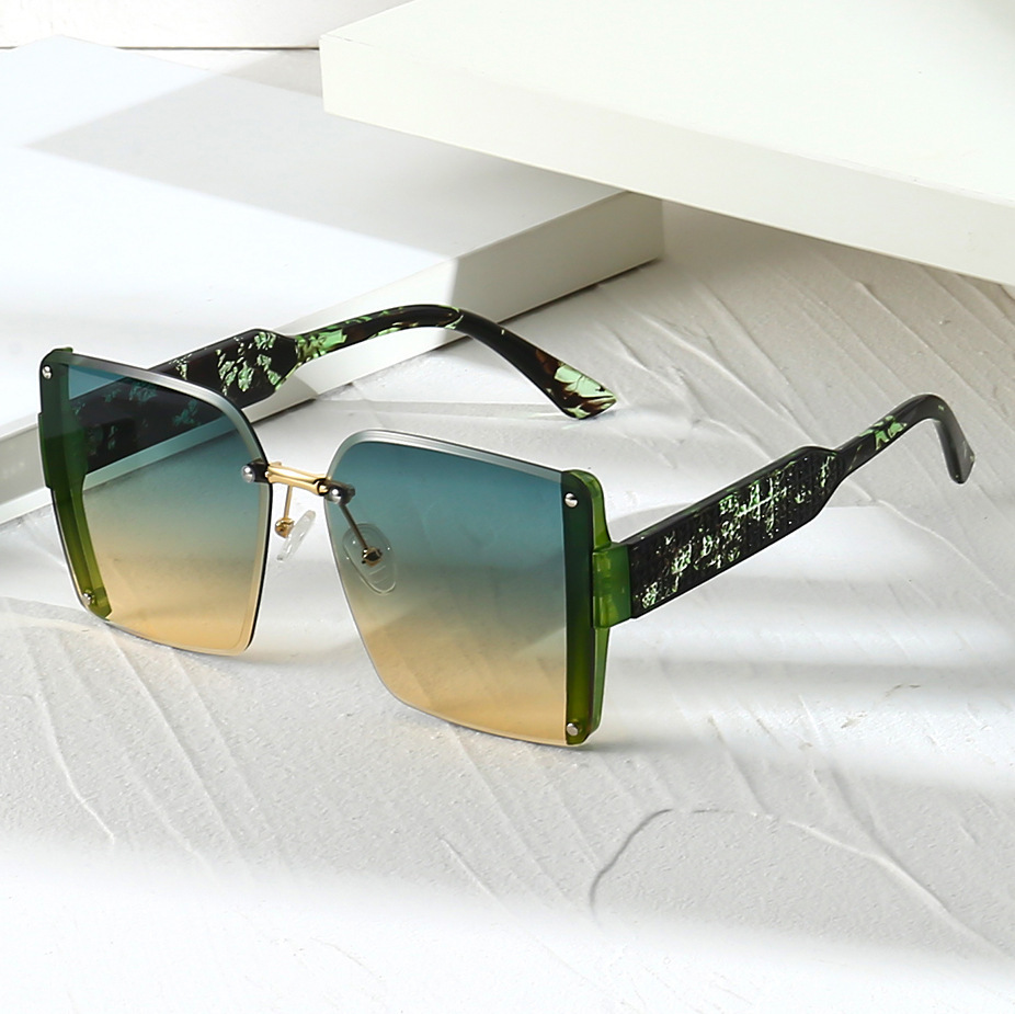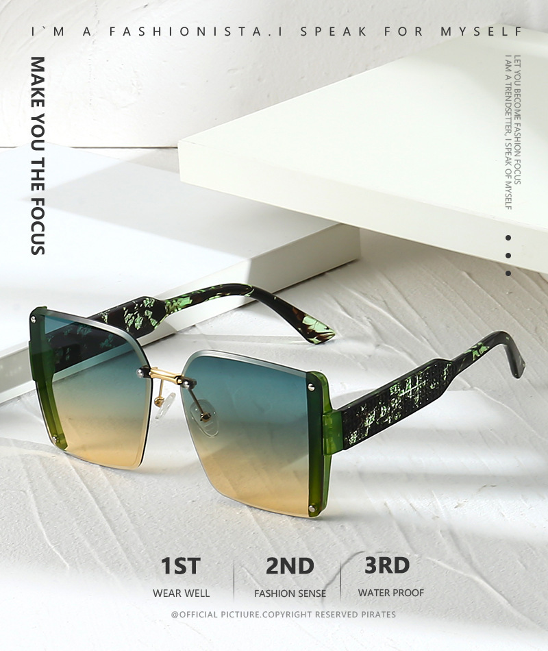 새로운 패셔너블한 사각형 프레임리스 컷 에지 맞춤형 유럽 및 미국 패션쇼 라이트 럭셔리 선글라스 인터넷 연예인 같은 스타일의 트렌디한 선글라스