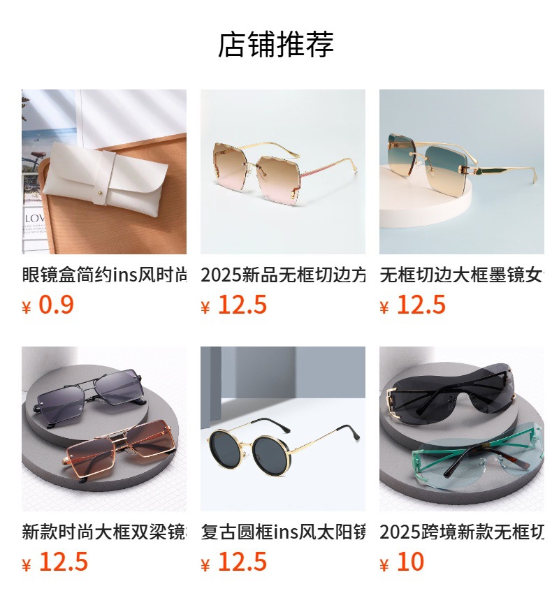 새로운 패셔너블한 사각형 프레임리스 컷 에지 맞춤형 유럽 및 미국 패션쇼 라이트 럭셔리 선글라스 인터넷 연예인 같은 스타일의 트렌디한 선글라스스토어 가기