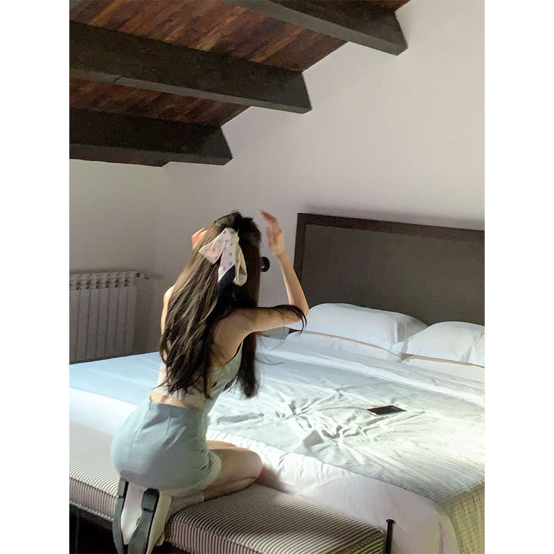 Titi 레이디 Lilith Xiaoxiang 세트 여성 여름 하이 엔드 홀터 탑 하프 스커트 얇은 투피스 세트스토어 가기