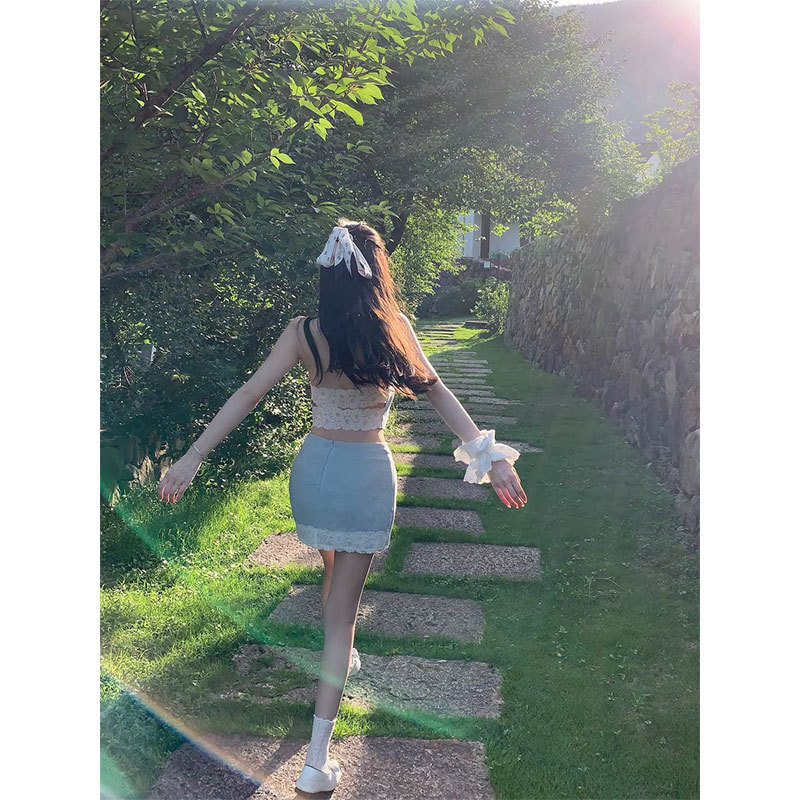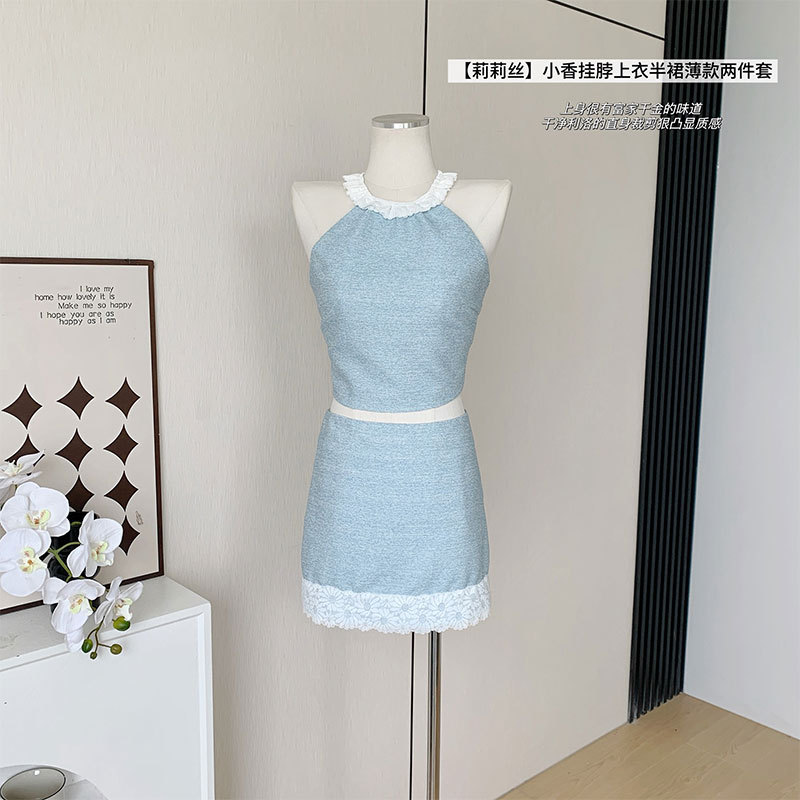 Titi 레이디 Lilith Xiaoxiang 세트 여성 여름 하이 엔드 홀터 탑 하프 스커트 얇은 투피스 세트
