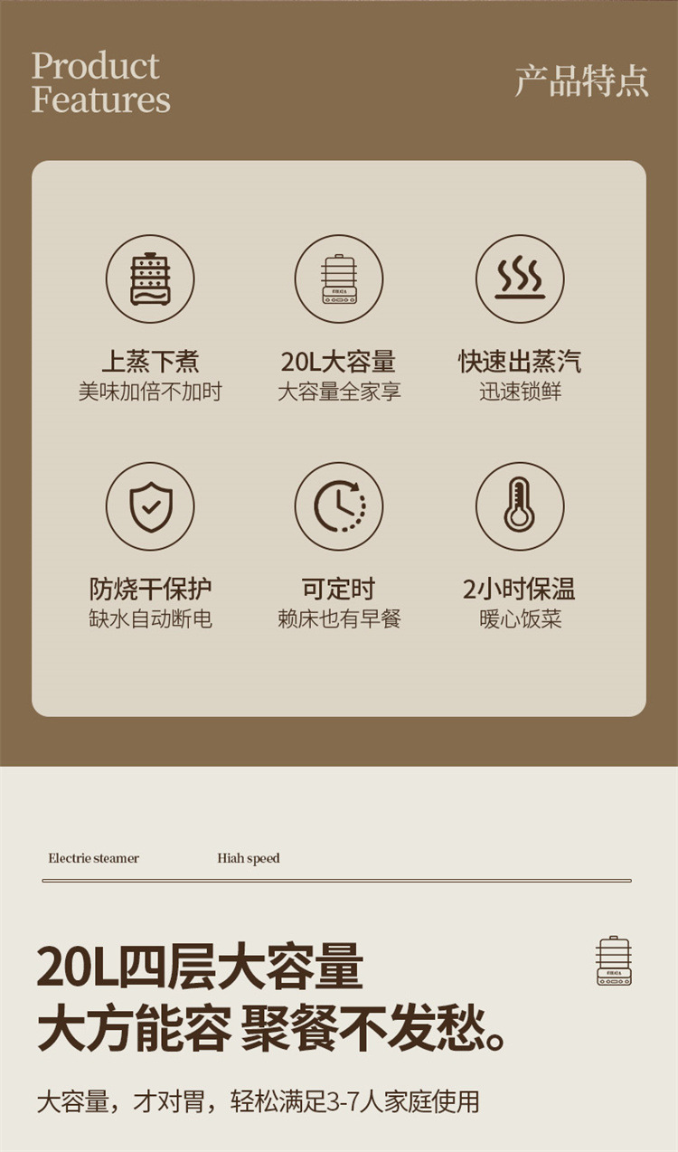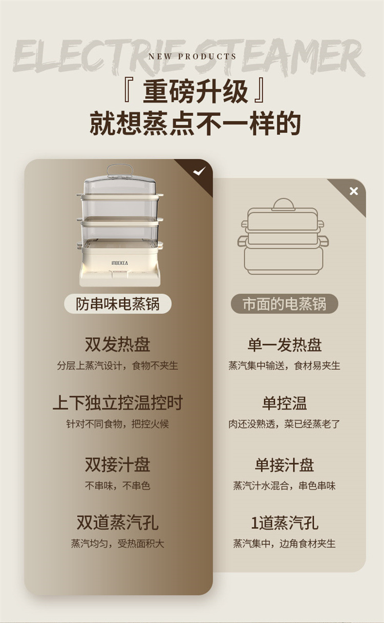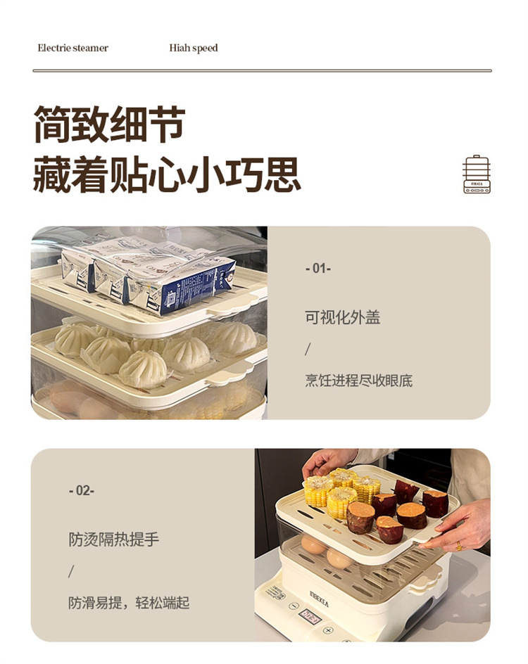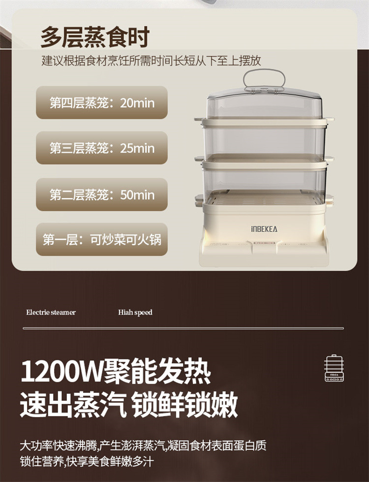 엄선된 가정용 주방 전기 찜기, 대용량 3단 다기능 찜통, 완전 자동 스마트 아침식사 찜기 도매스토어 가기