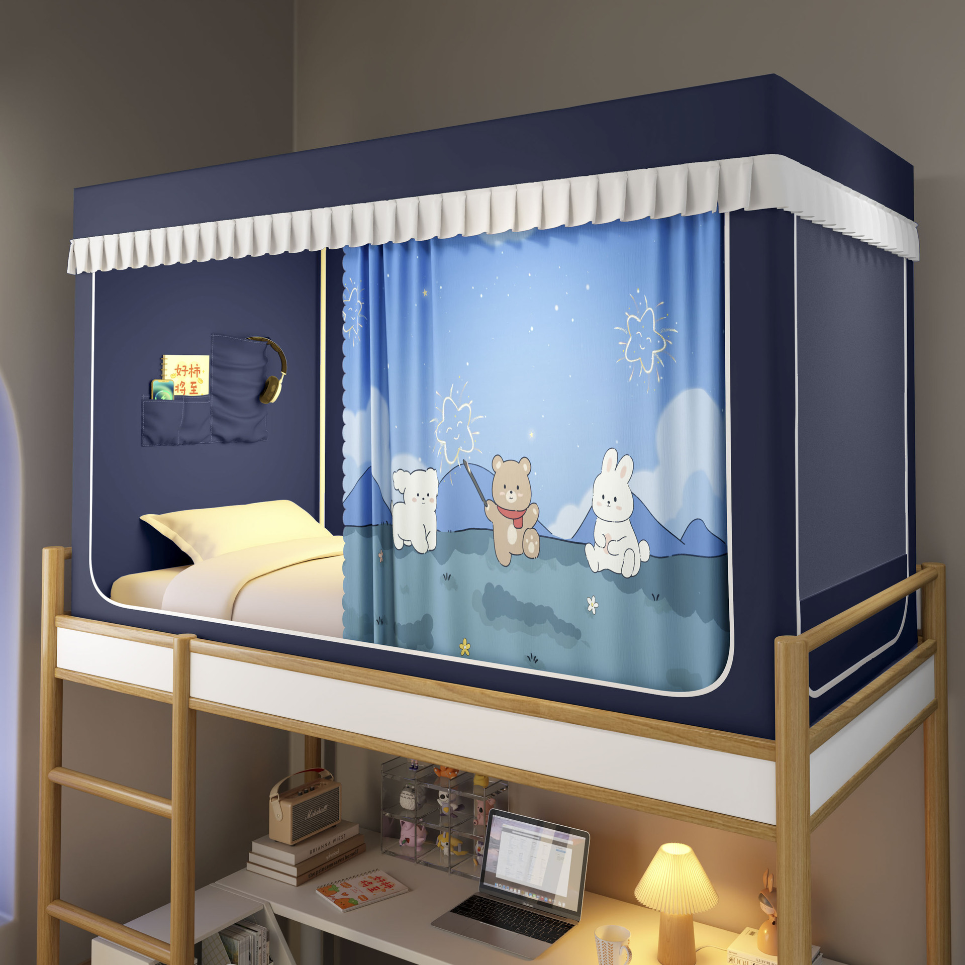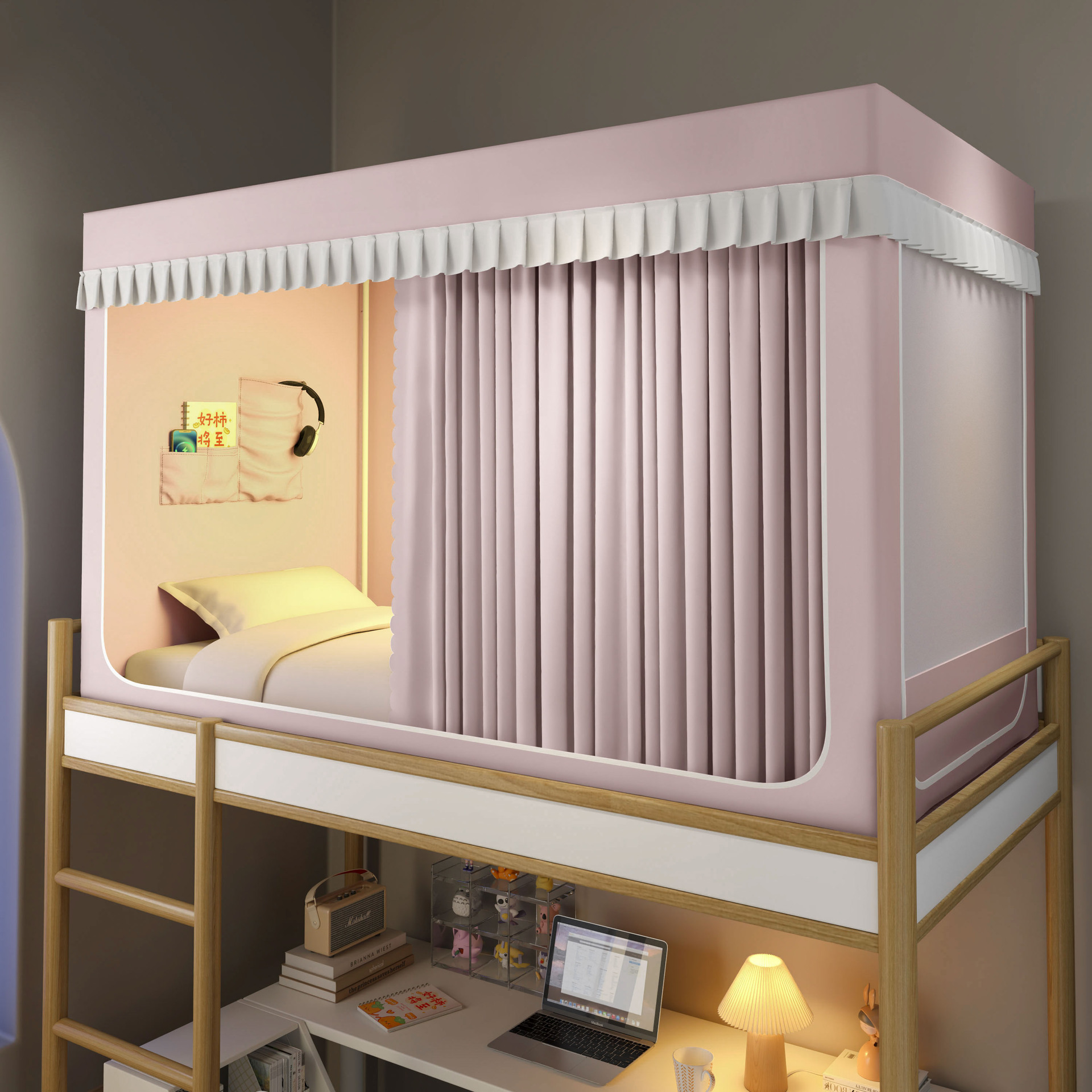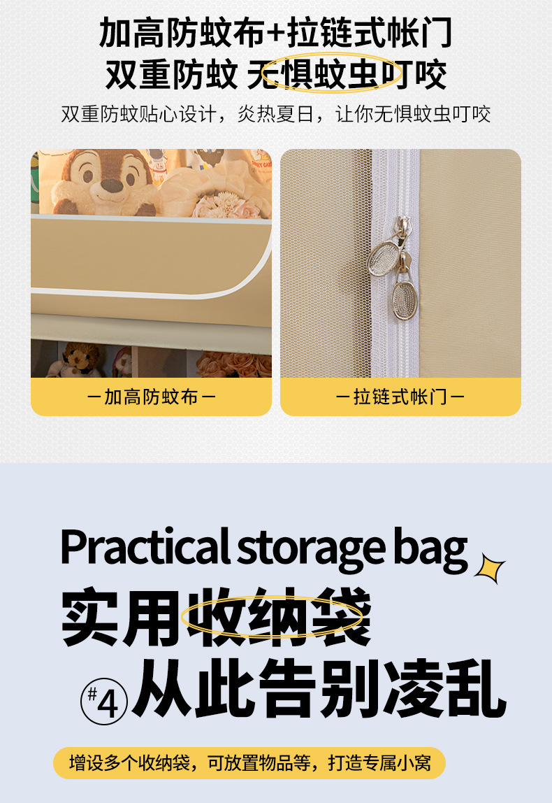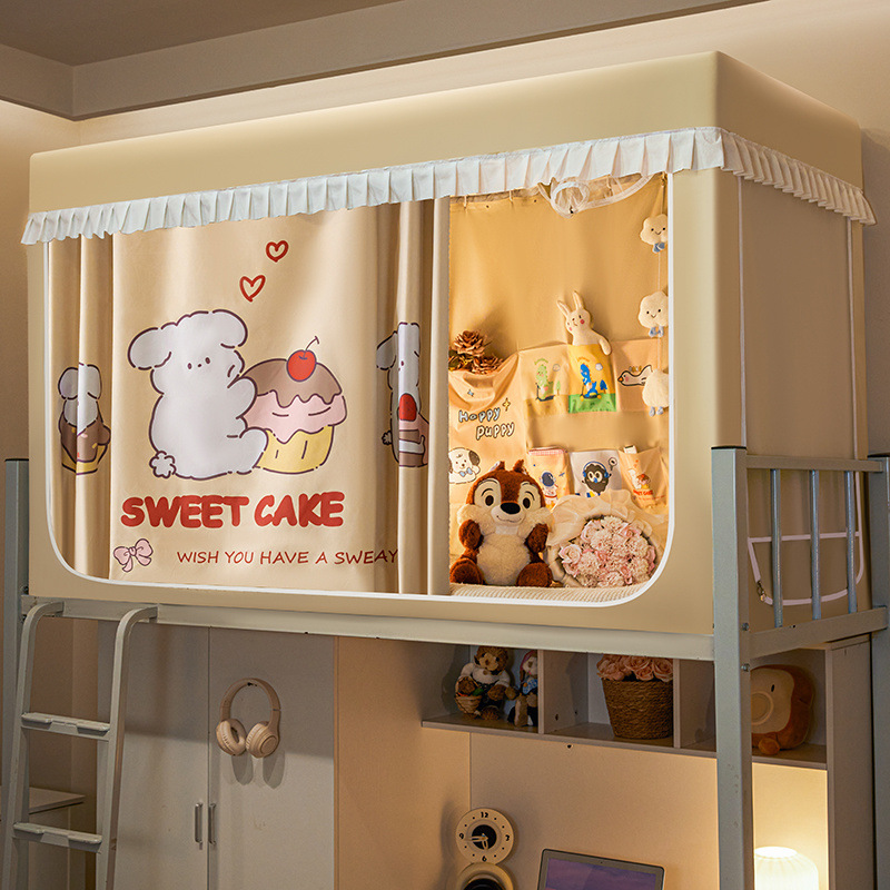 2026년형 신형 학생 기숙사 강력 차광 모기장 일체형 침대 커튼 설치 불필요, 기숙사 이층 침대 모두 사용 가능스토어 가기
