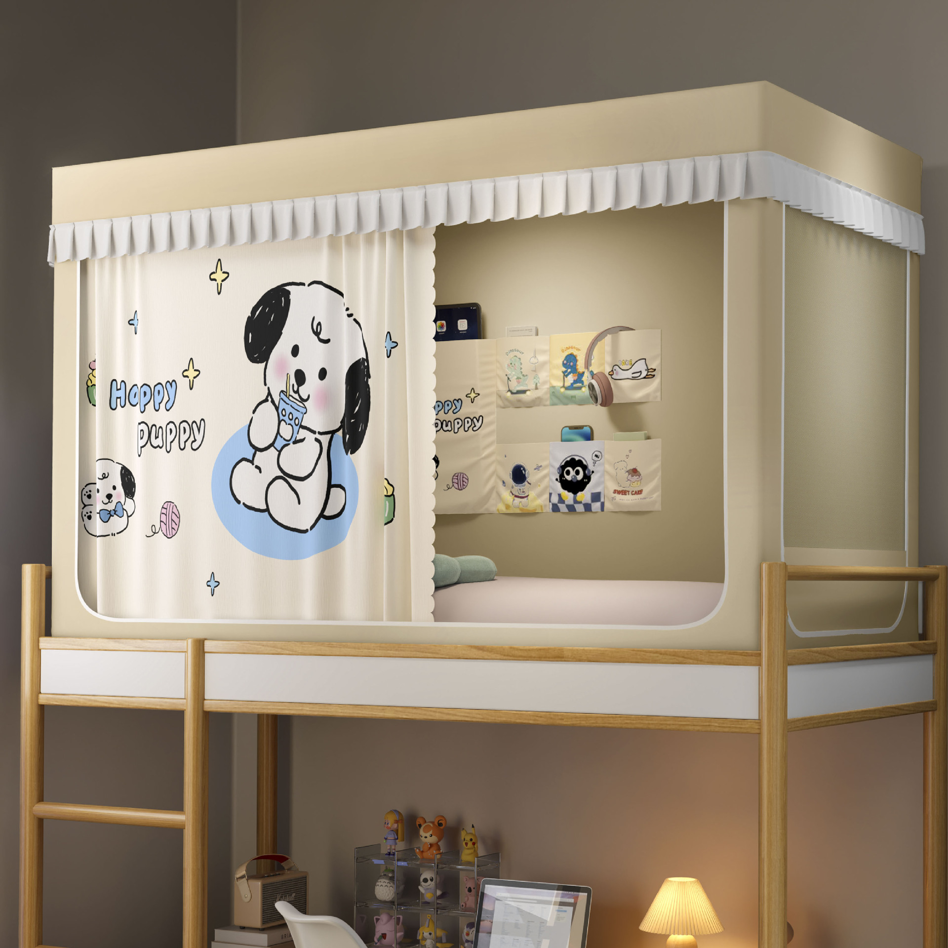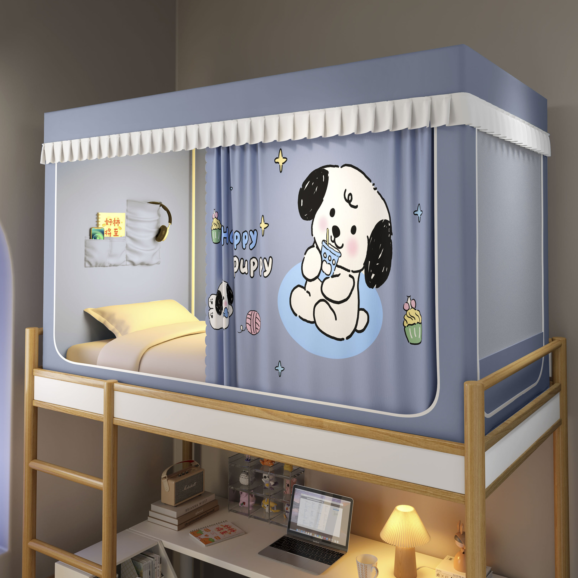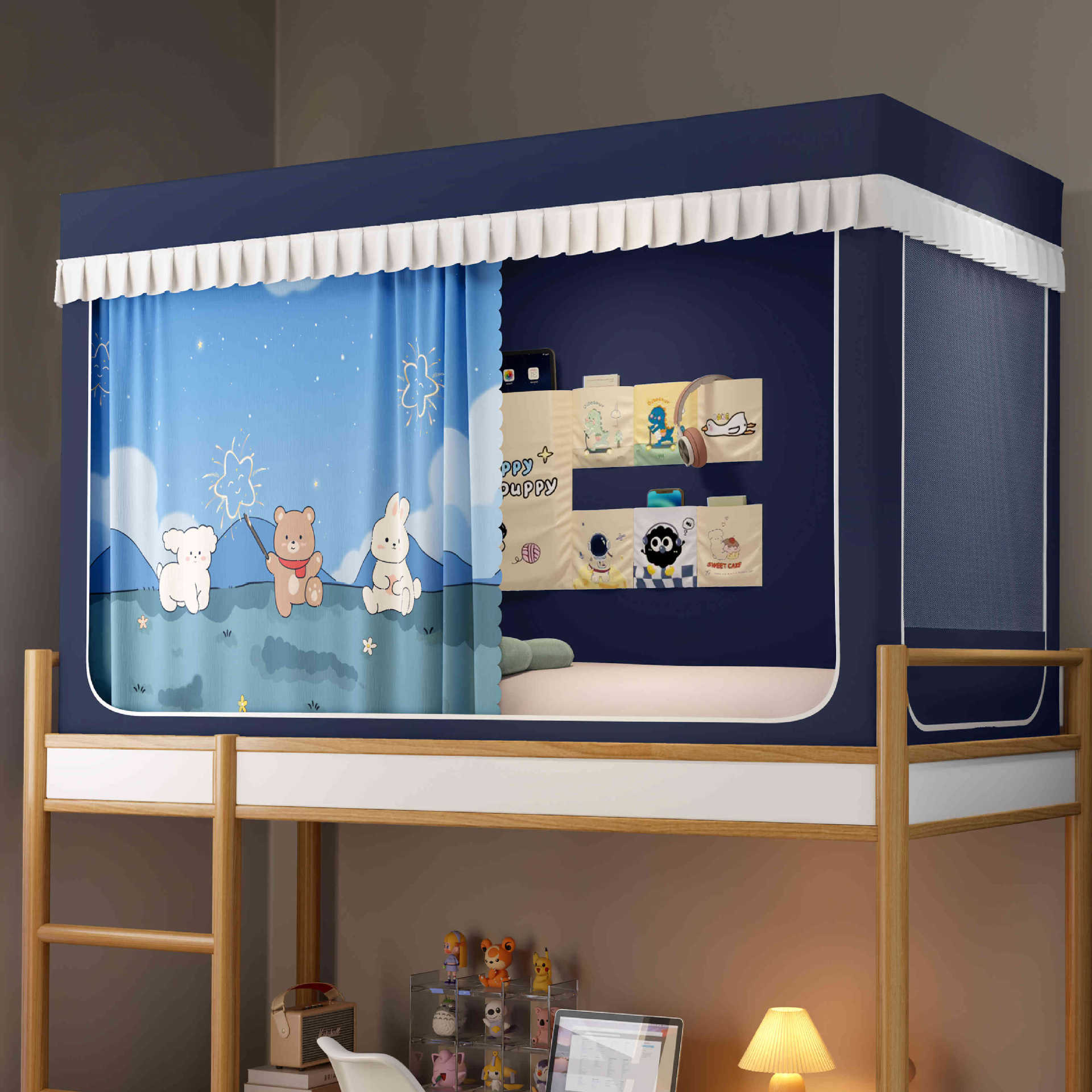 2026년형 신형 학생 기숙사 강력 차광 모기장 일체형 침대 커튼 설치 불필요, 기숙사 이층 침대 모두 사용 가능스토어 가기