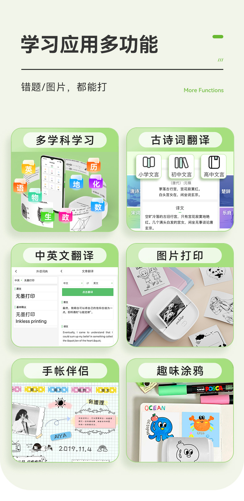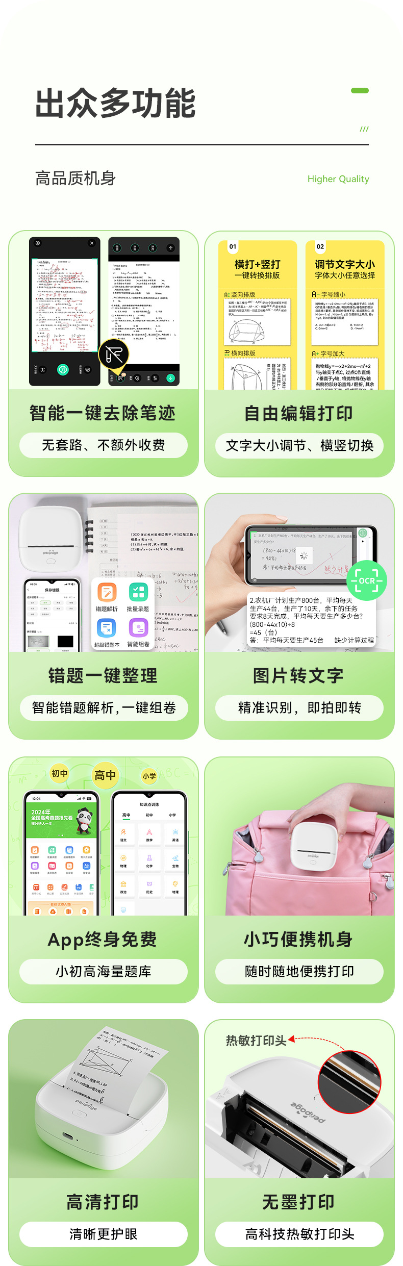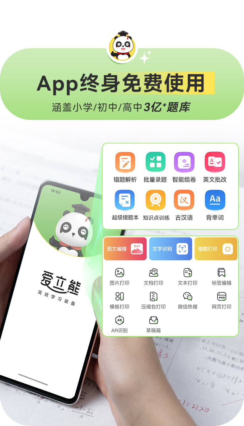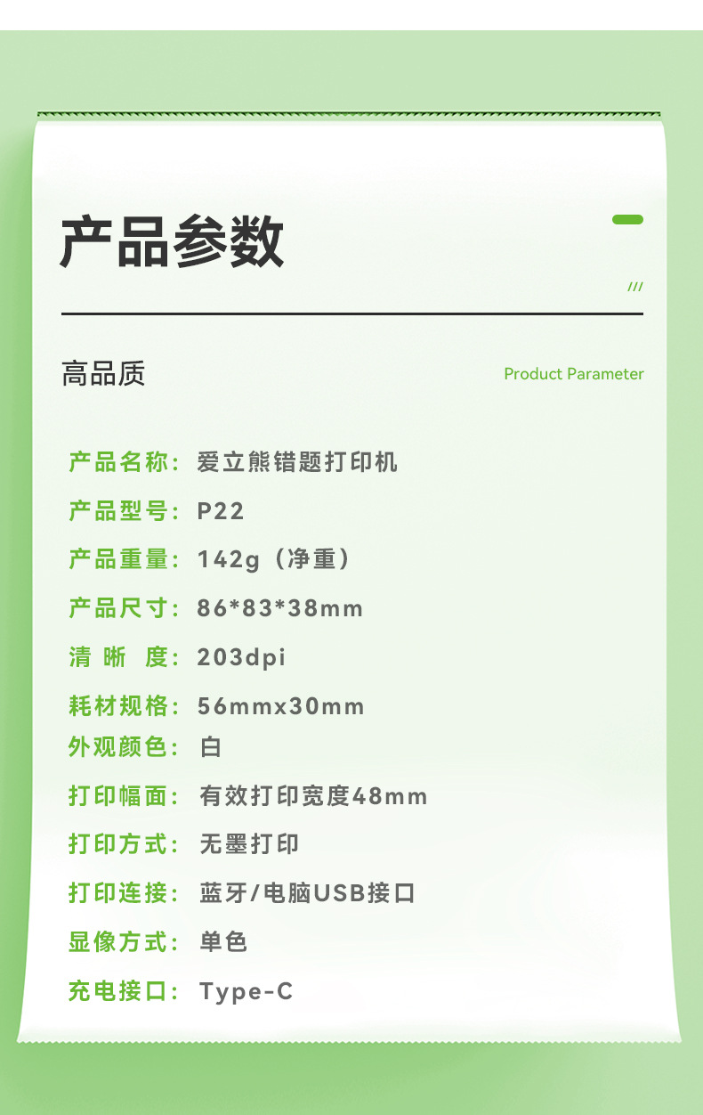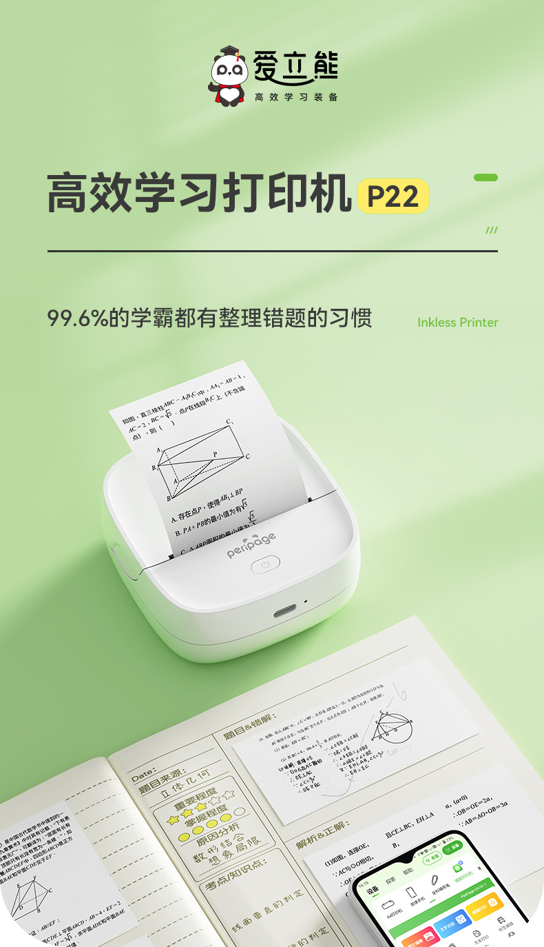 에릭베어 P22 오답지 프린터 2inch 열전사 휴대용 블루투스 휴대폰 연결 프린터 가정용 소형