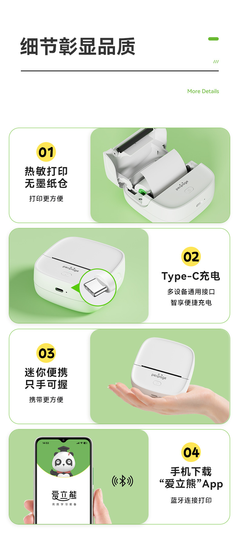 에릭베어 P22 오답지 프린터 2inch 열전사 휴대용 블루투스 휴대폰 연결 프린터 가정용 소형스토어 가기
