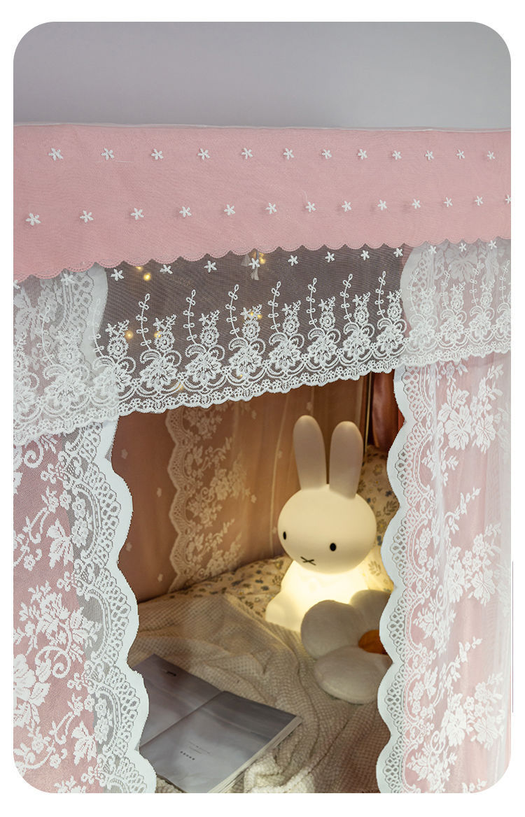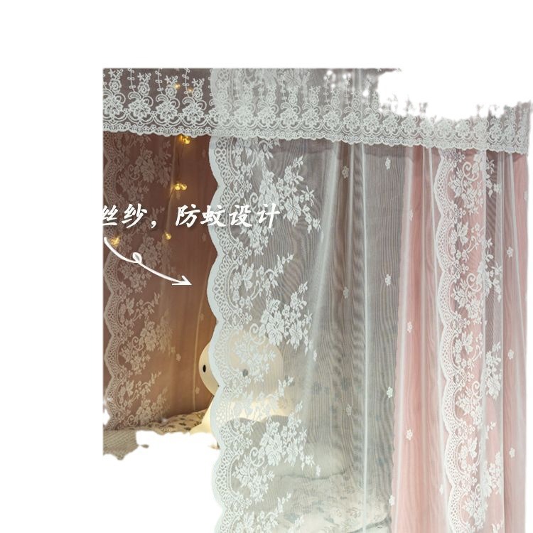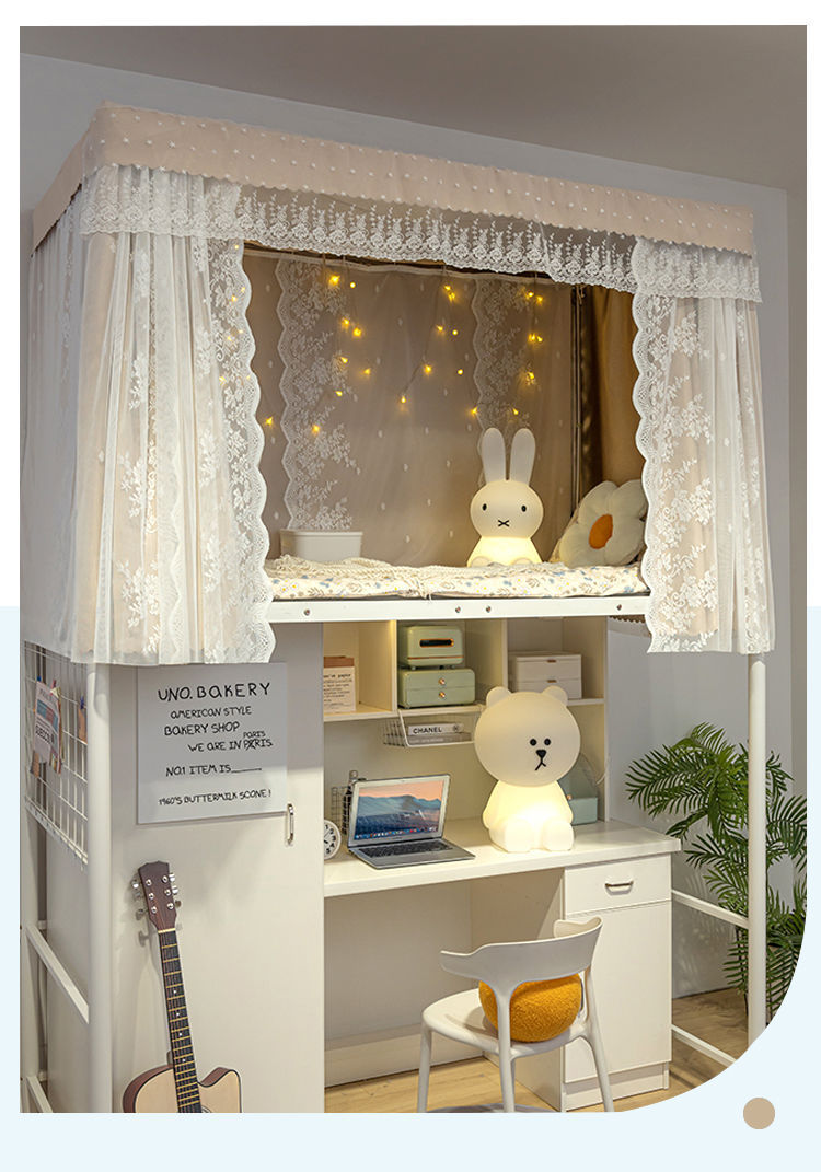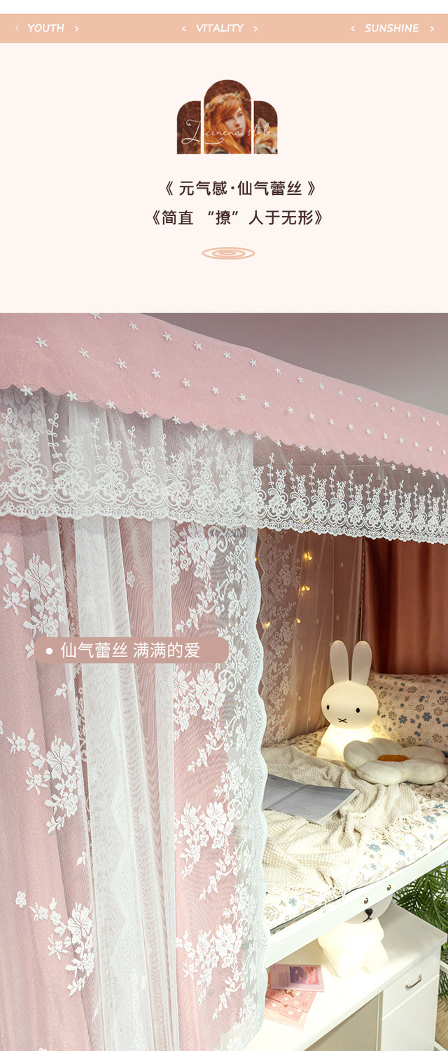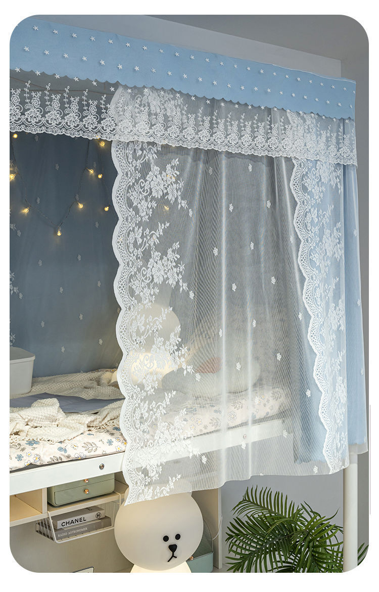 학생 기숙사 침대 커튼, 상단 및 하단 강력한 빛 차단 커튼, 여성 기숙사 레이스 거즈 모기장 U자형 트랙 침대 L스토어 가기