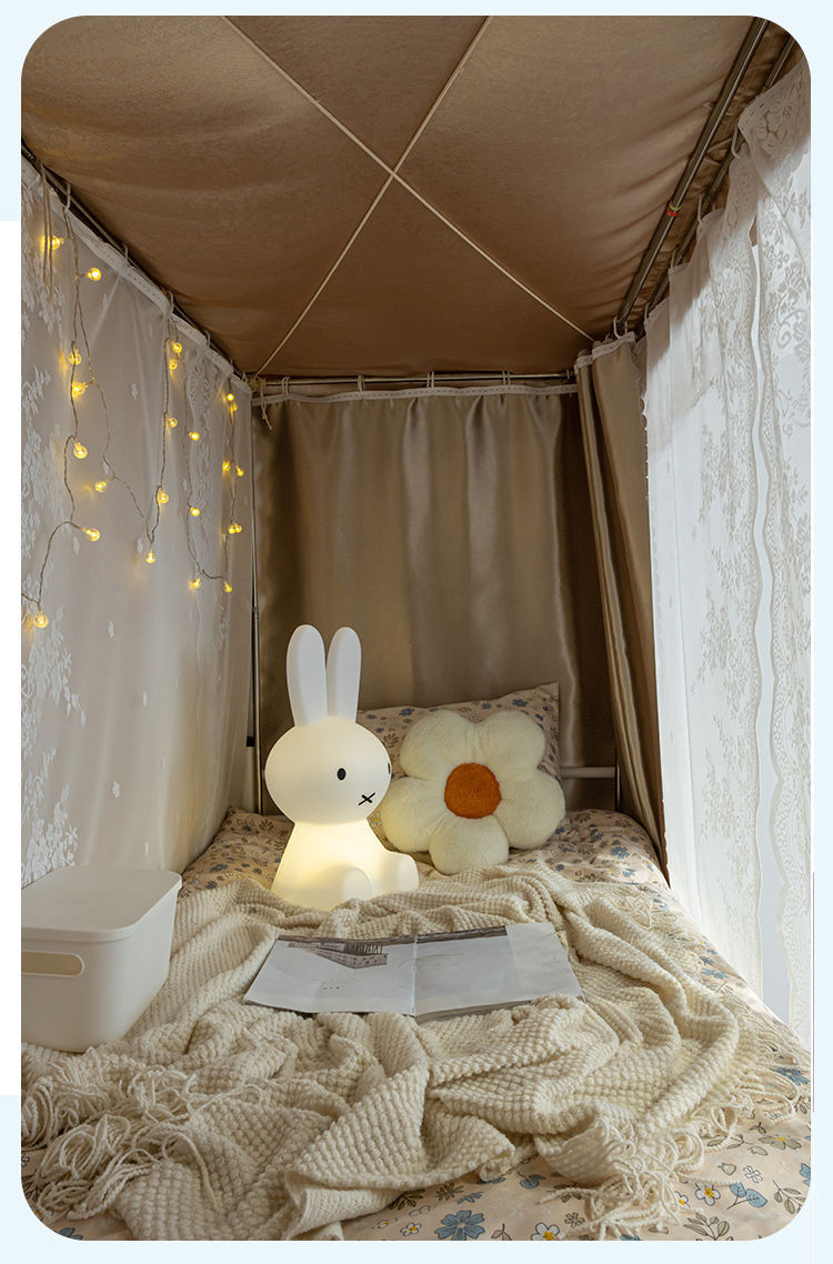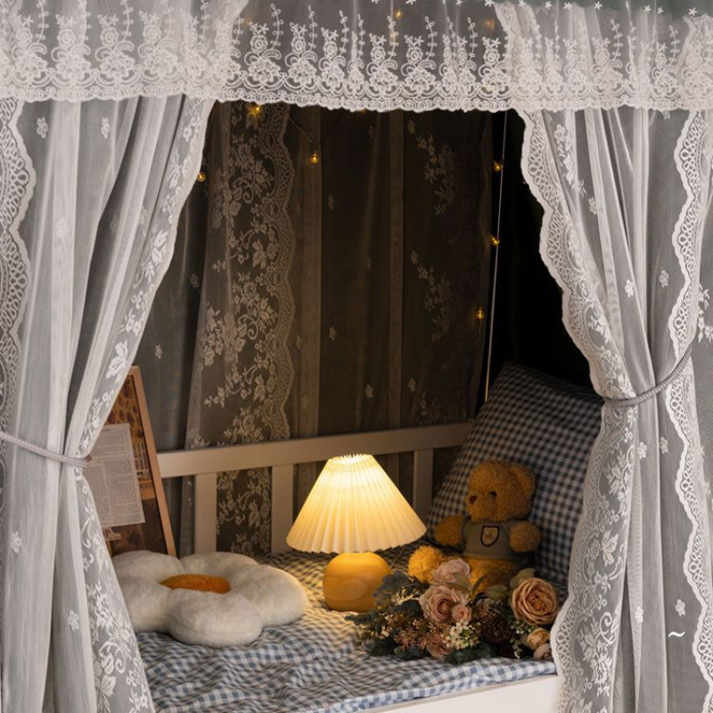 • 하부 침대는 [천 3개 + 레이스실 3개 + 이중 레일]으로 4면을 둘러쌉니다.