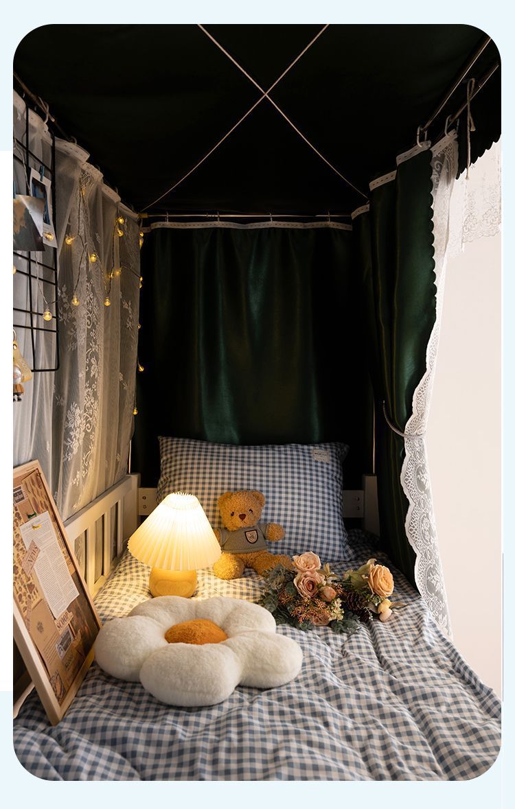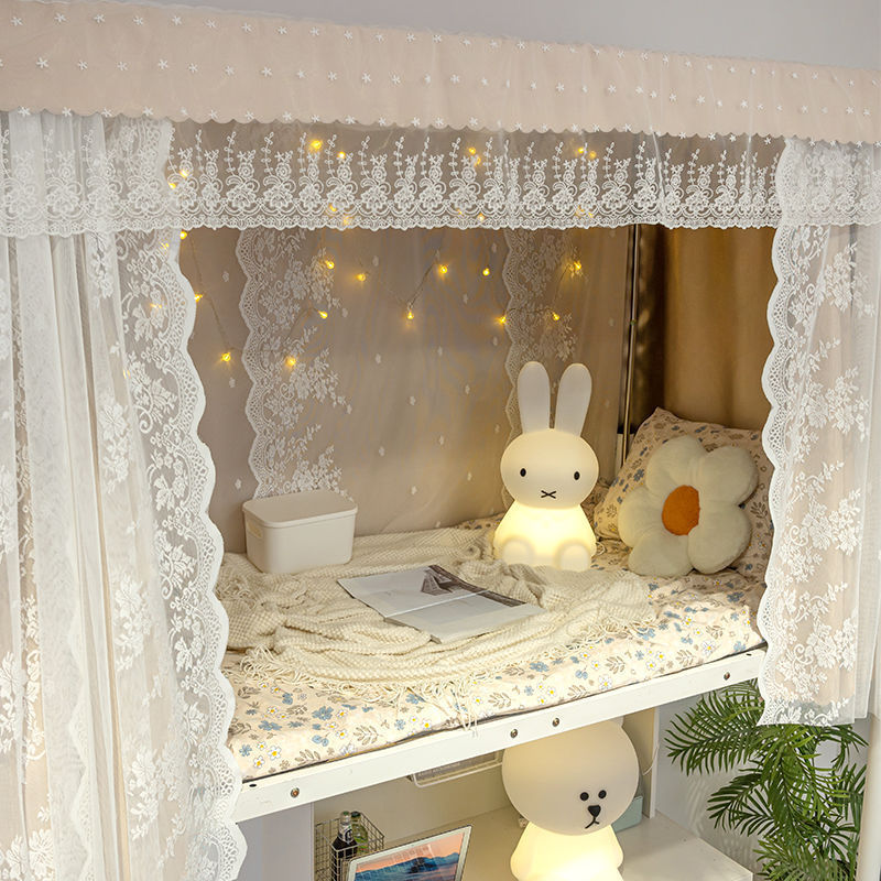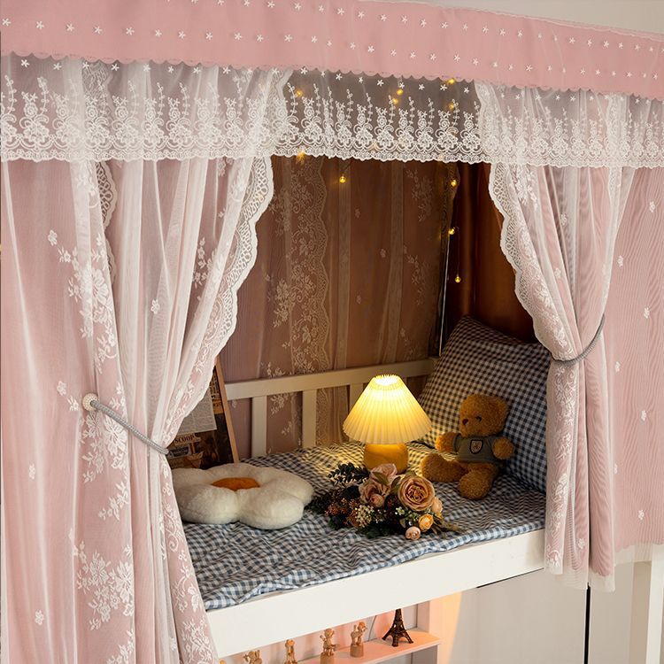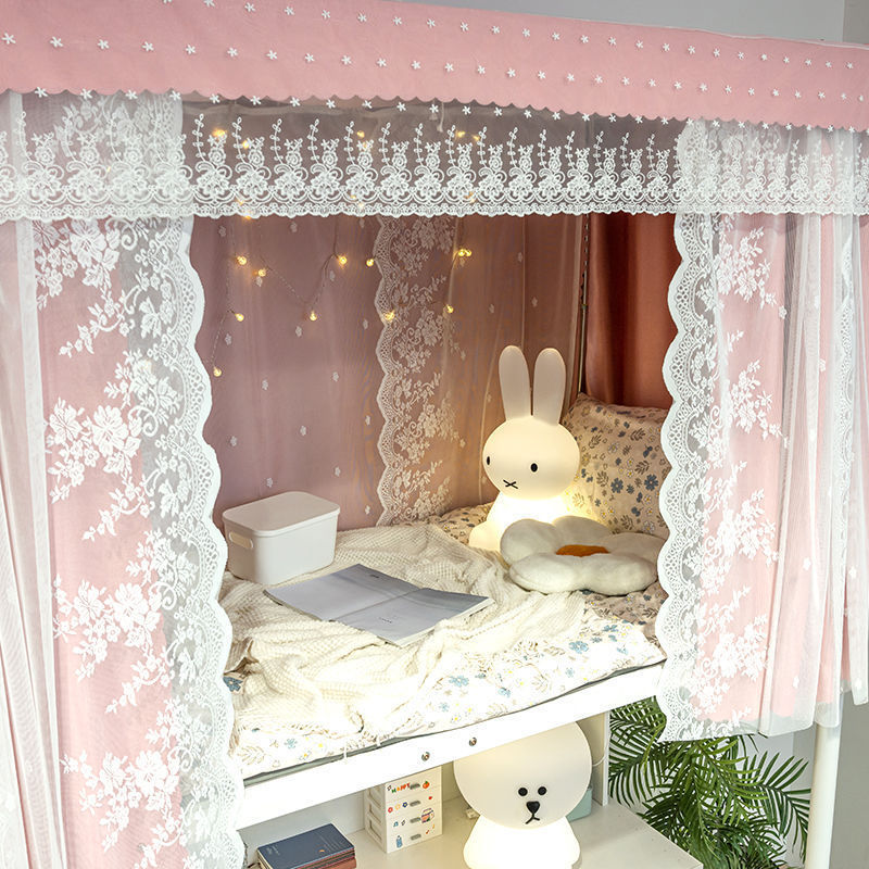 학생 기숙사 침대 커튼, 상단 및 하단 강력한 빛 차단 커튼, 여성 기숙사 레이스 거즈 모기장 U자형 트랙 침대 L