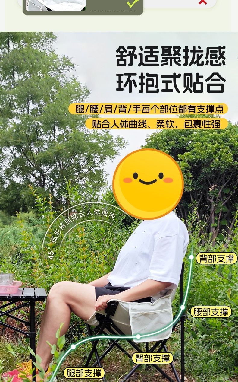 편안한/대나무 면 및 린넨 접이식 달 의자 야외 통기성 게으른 피크닉 학생 미술 캠핑 해변 Lanqi스토어 가기