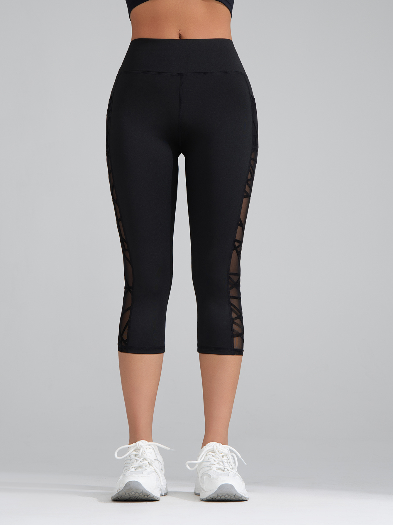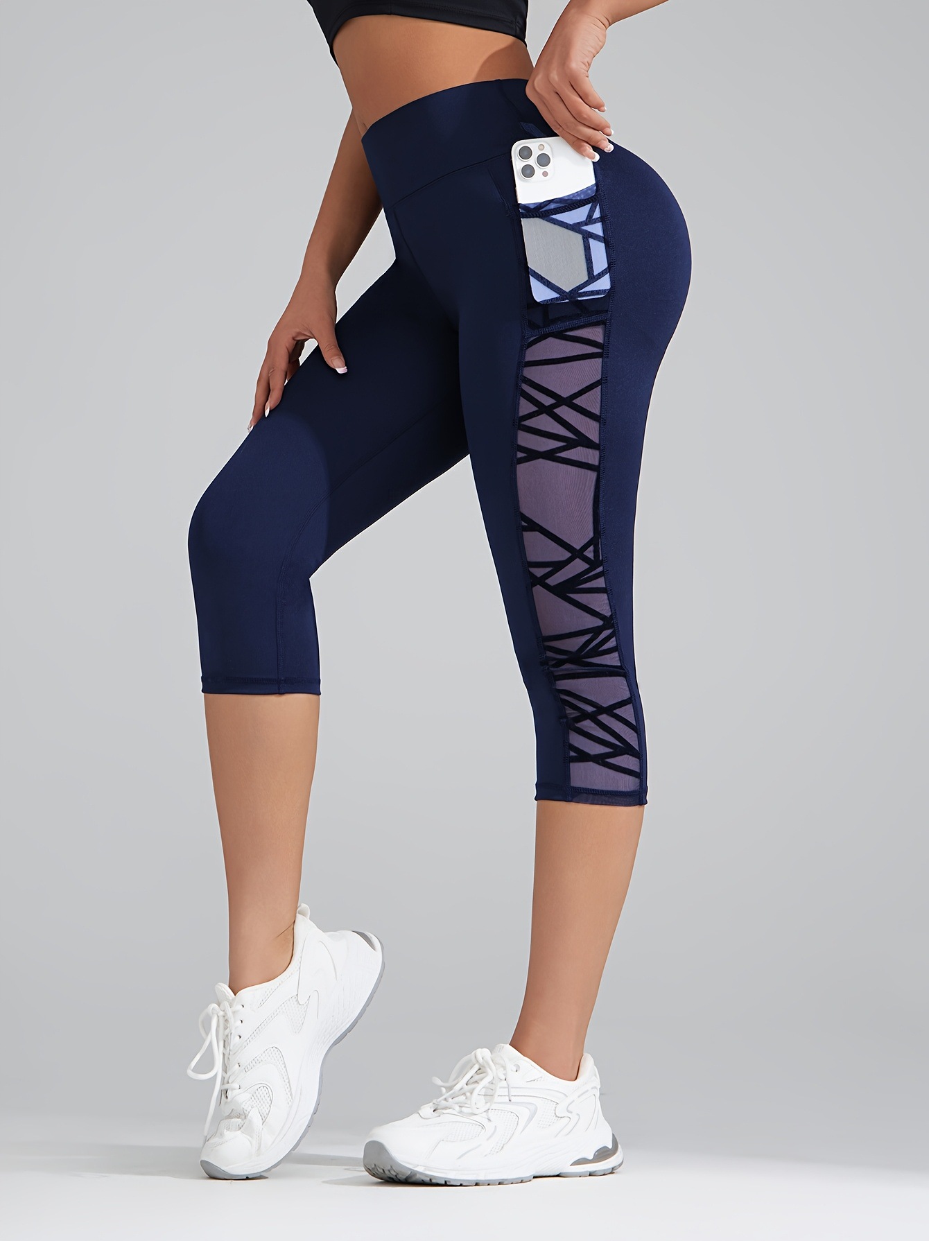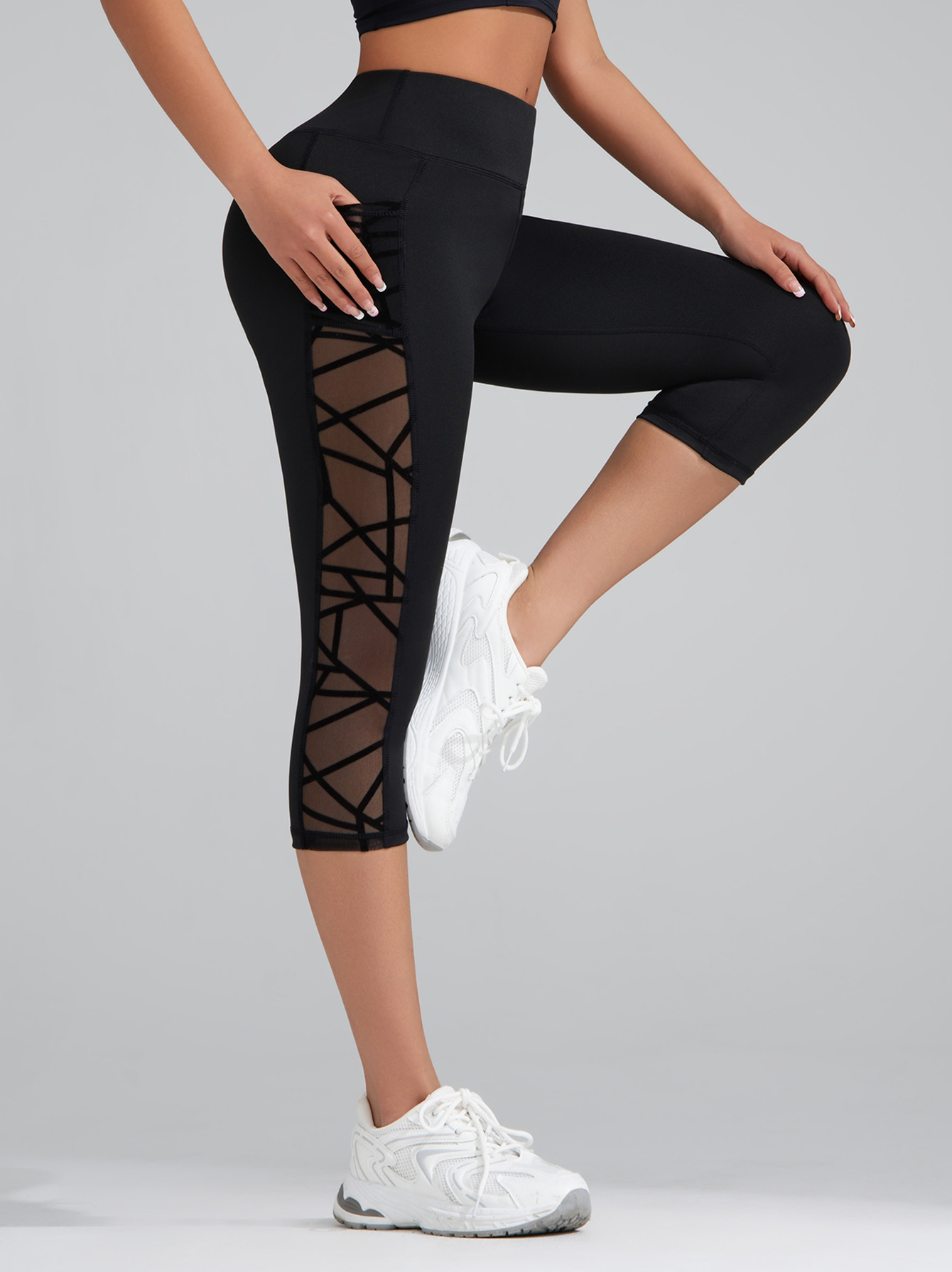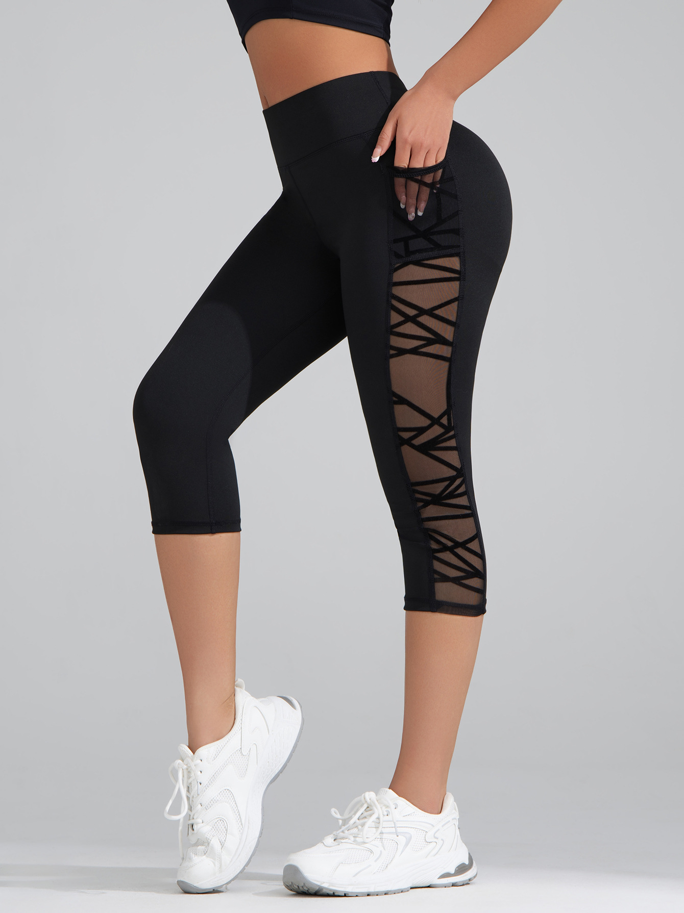 신상 스포츠 크롭 팬츠, 힙업 스플라이스 메쉬 요가 팬츠, 포켓 레깅스, 여성용 팬츠