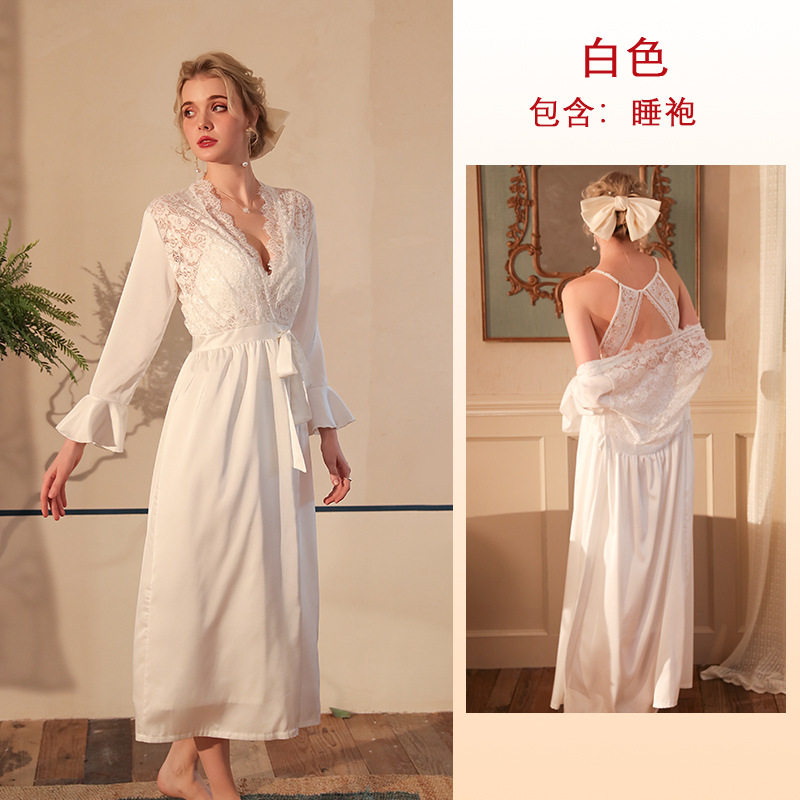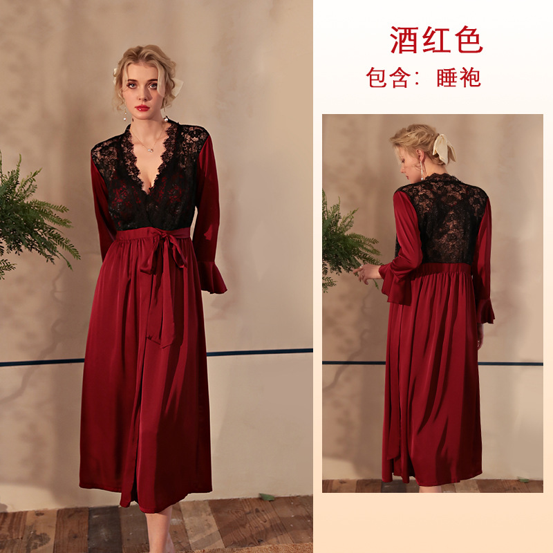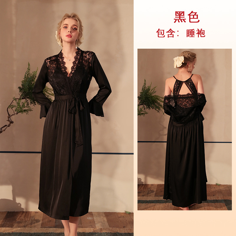 머피 섹시 새틴 잠옷 여성용 레이스 슬립 드레스 롱 잠옷 홈 가운 투피스 세트 516+522