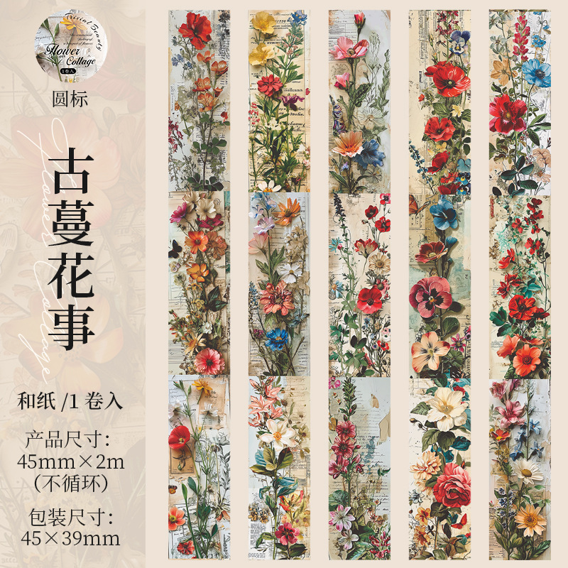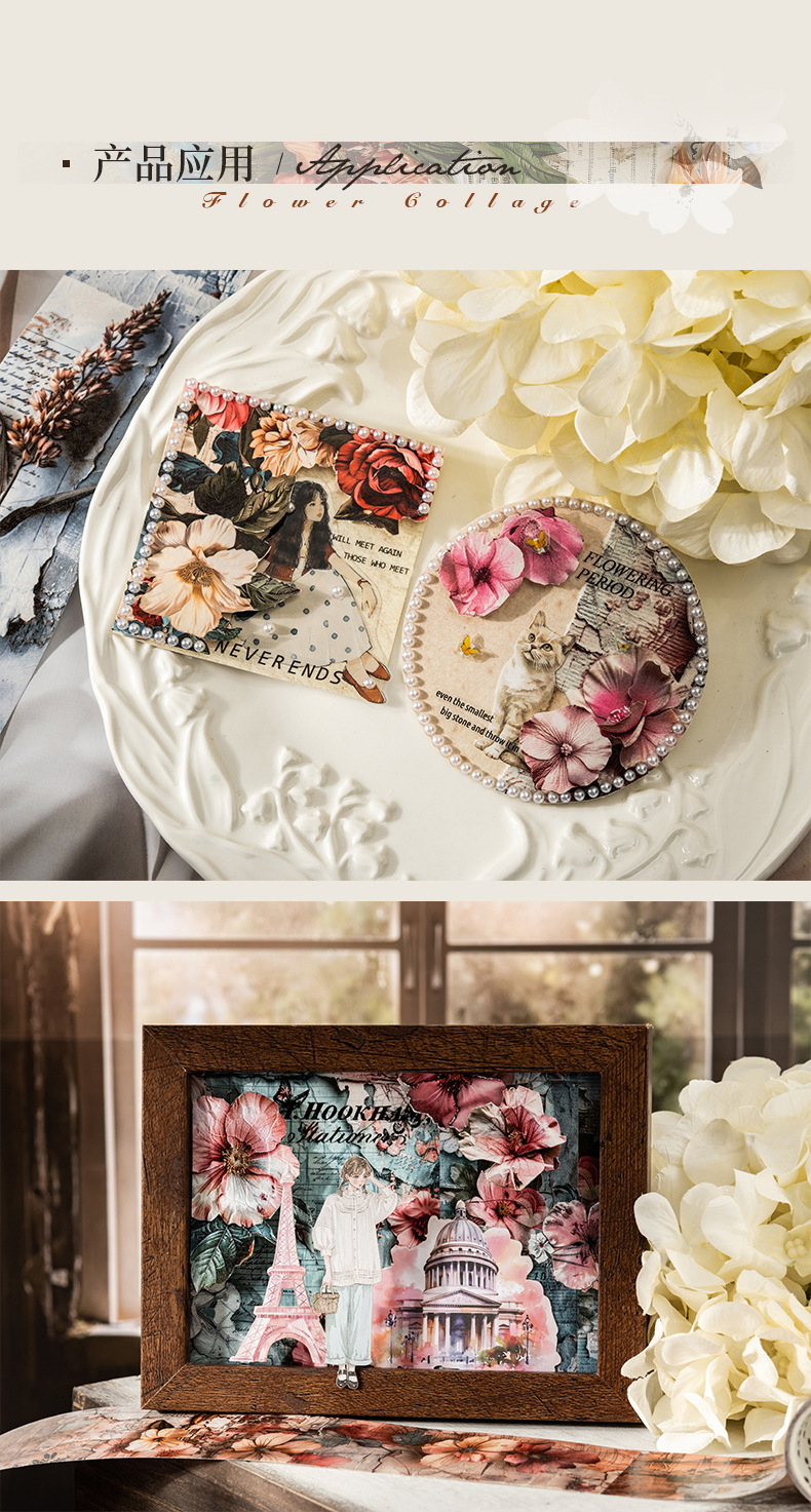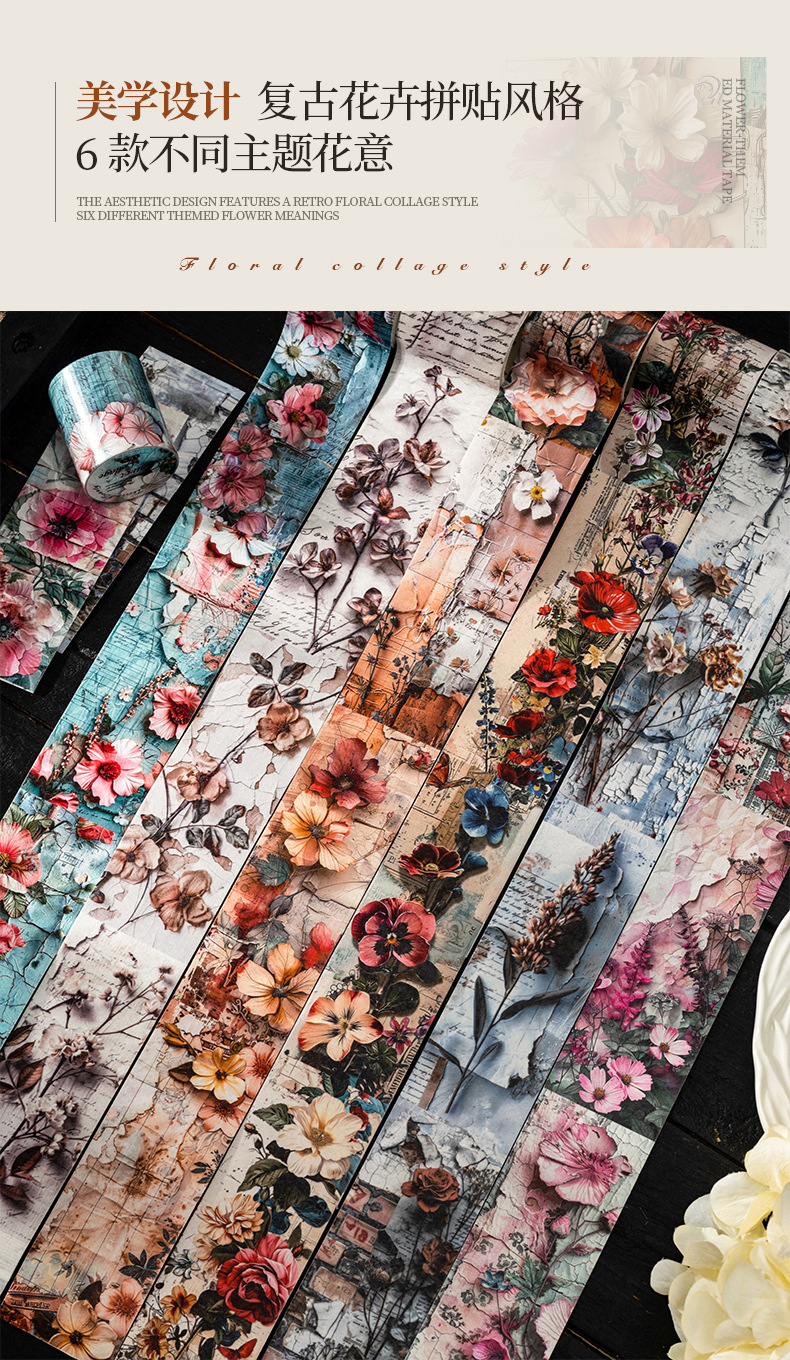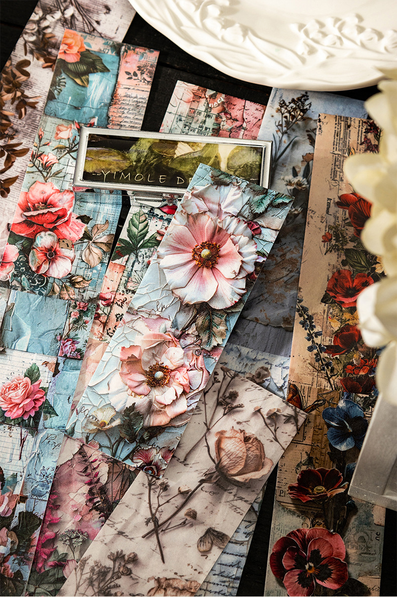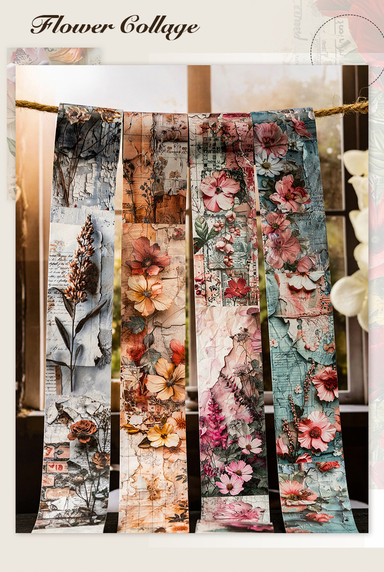 토마토 소스 및 종이 조경 테이프, 복고풍 꽃 소재 핸드북 배경, 베이스 장식 콜라주스토어 가기