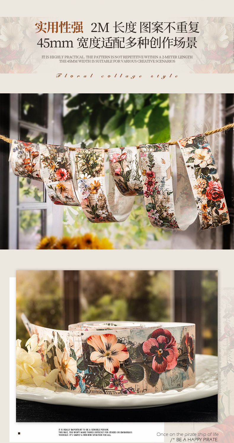 토마토 소스 및 종이 조경 테이프, 복고풍 꽃 소재 핸드북 배경, 베이스 장식 콜라주