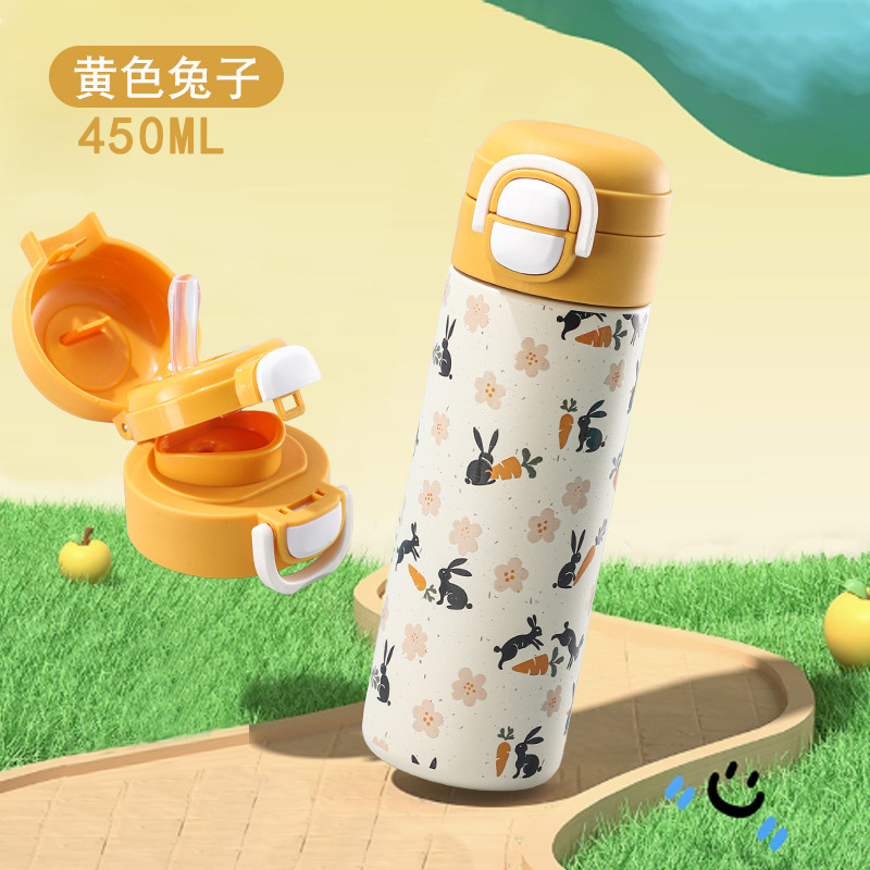 귀여운 학생 만화 보온병 컵, 학교용 휴대용 물컵, 간단한 스테인레스 스틸 팝업 커버, 이중 마시는 빨대 컵스토어 가기