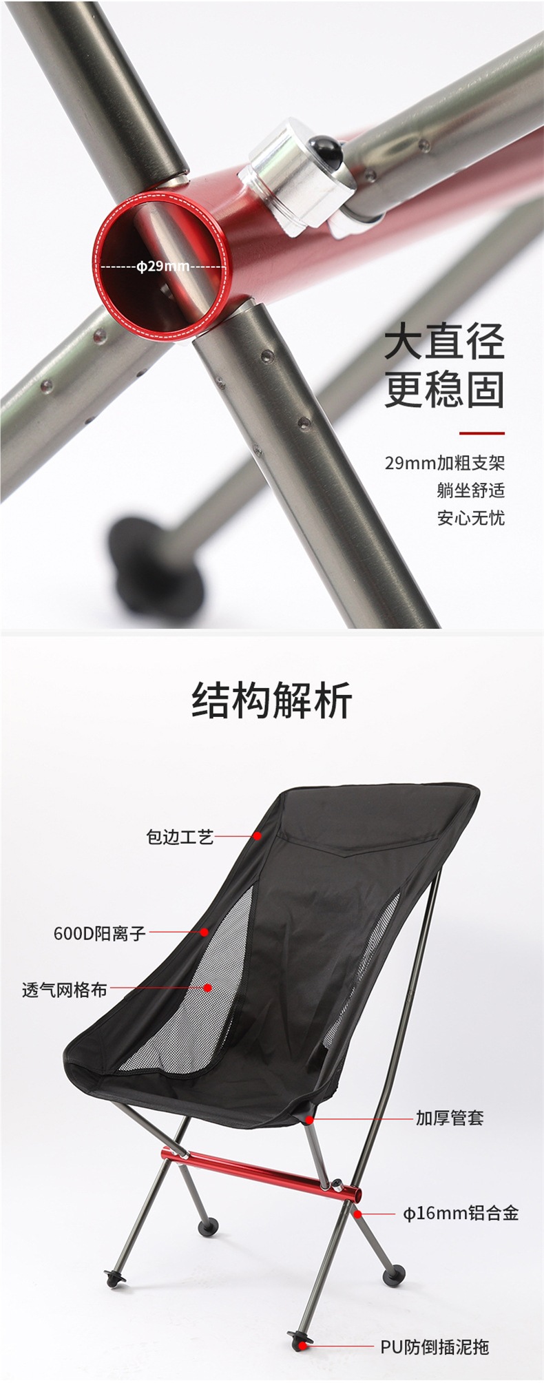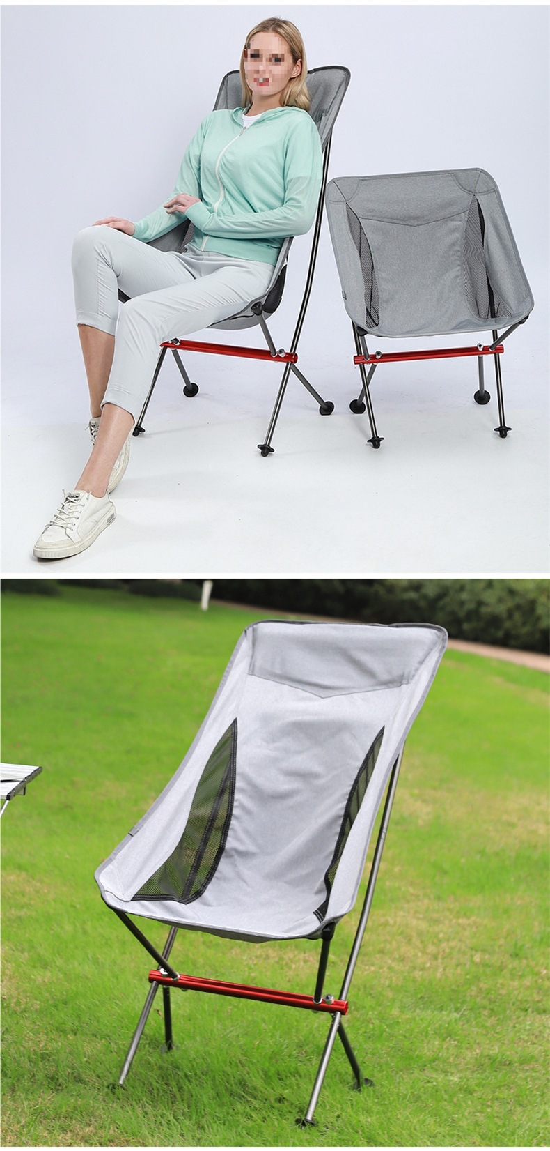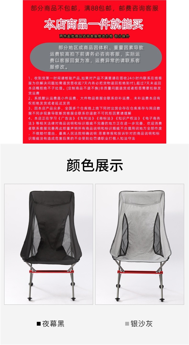 야외 접이식 의자 캠핑 해변 바베큐 휴대용 달 의자 자체 운전 레저 낚시 알루미늄 합금 의자 국경 간스토어 가기