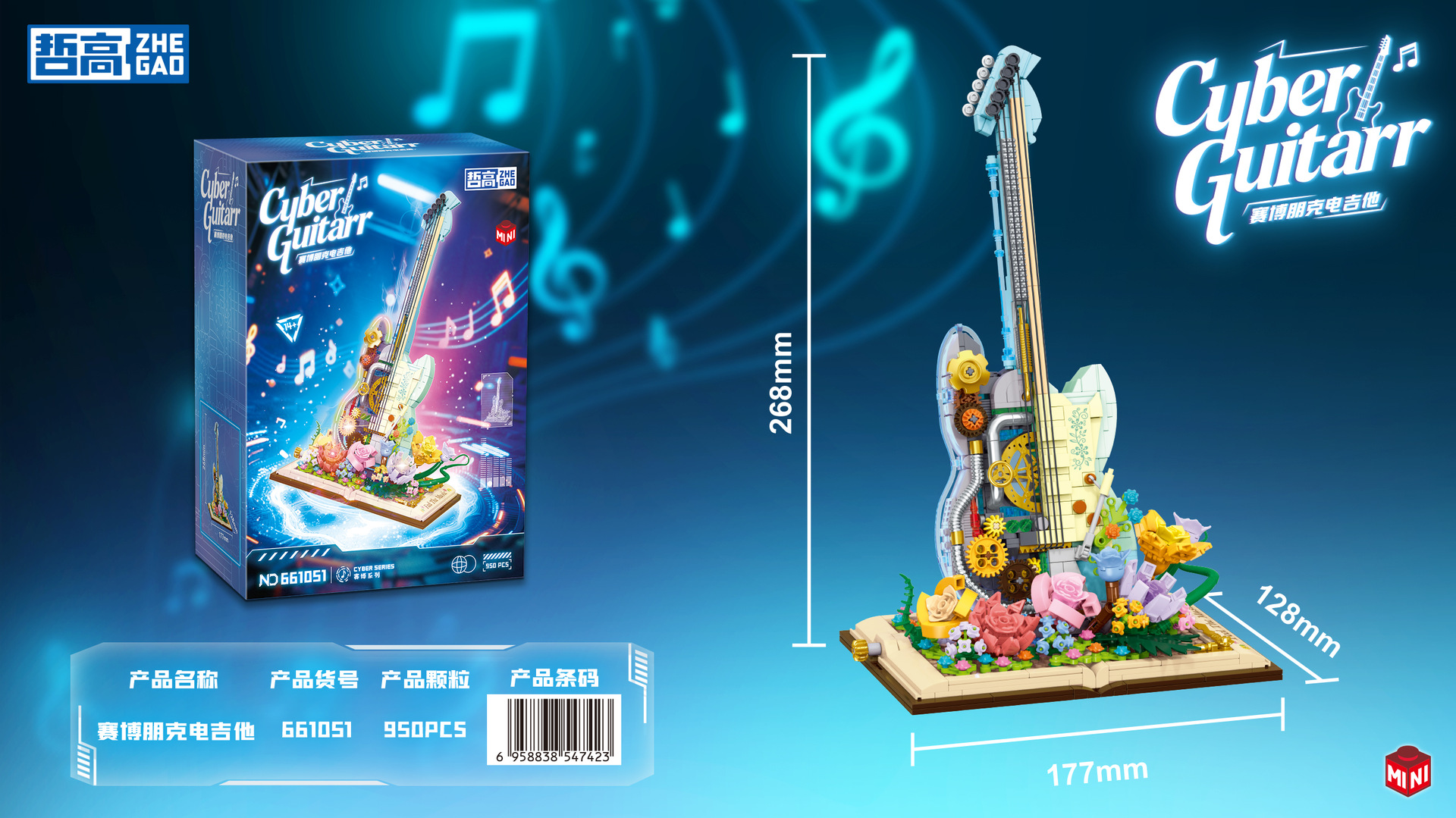 Zhegao 미니 빌딩 블록 크리 에이 티브 조립 DIY 장난감 661051 사이버 펑크 기타 모델 도매 배송