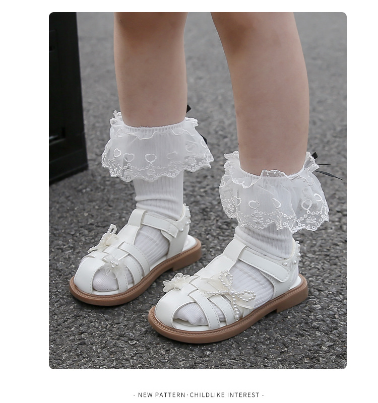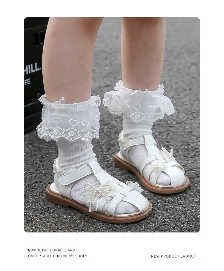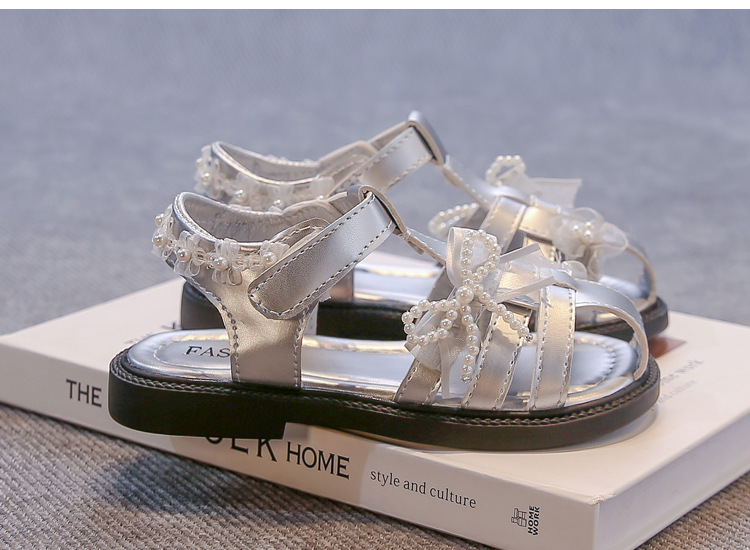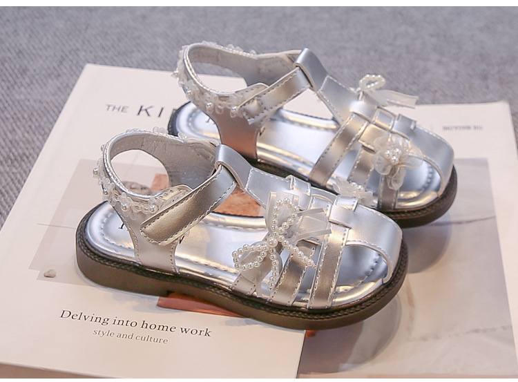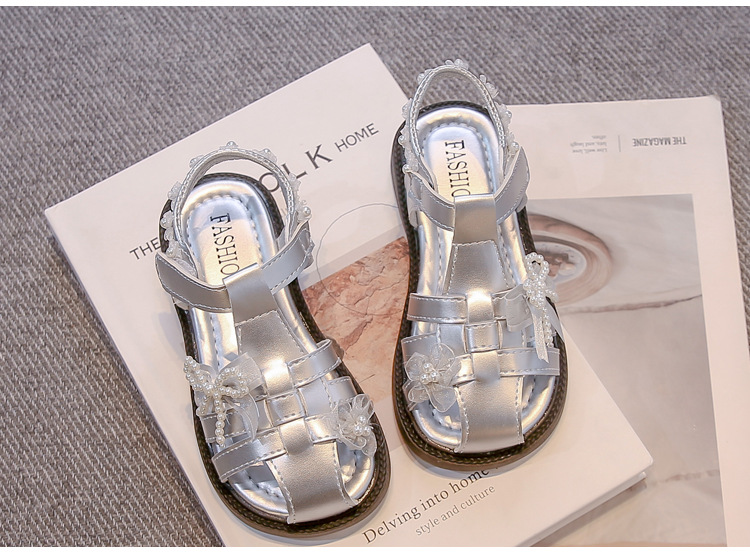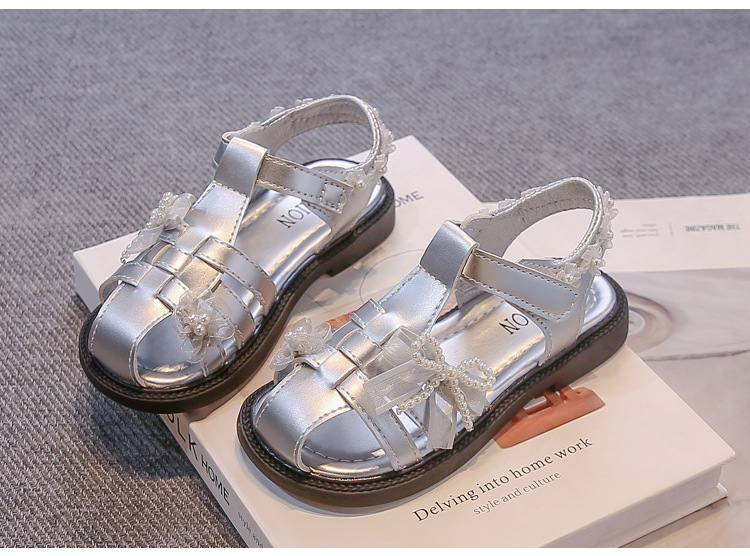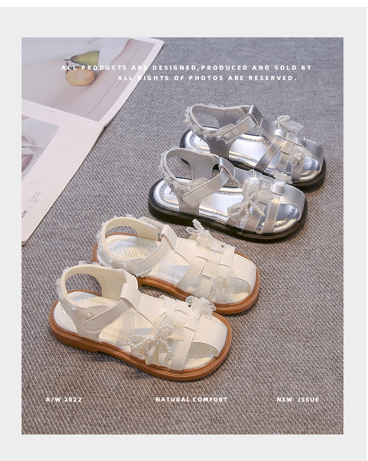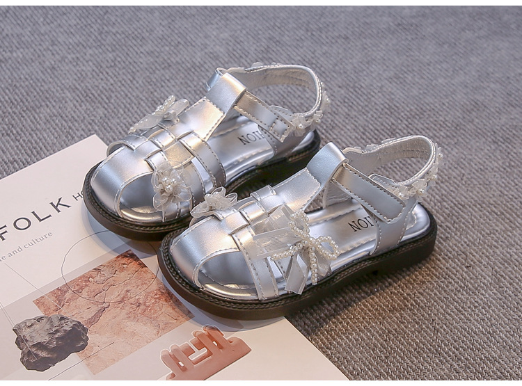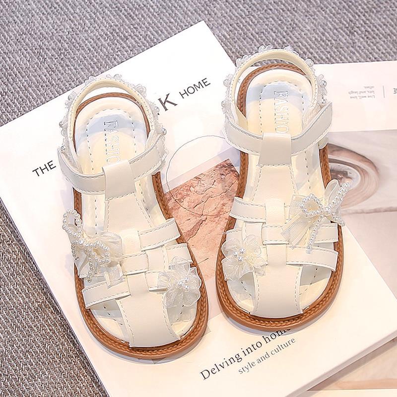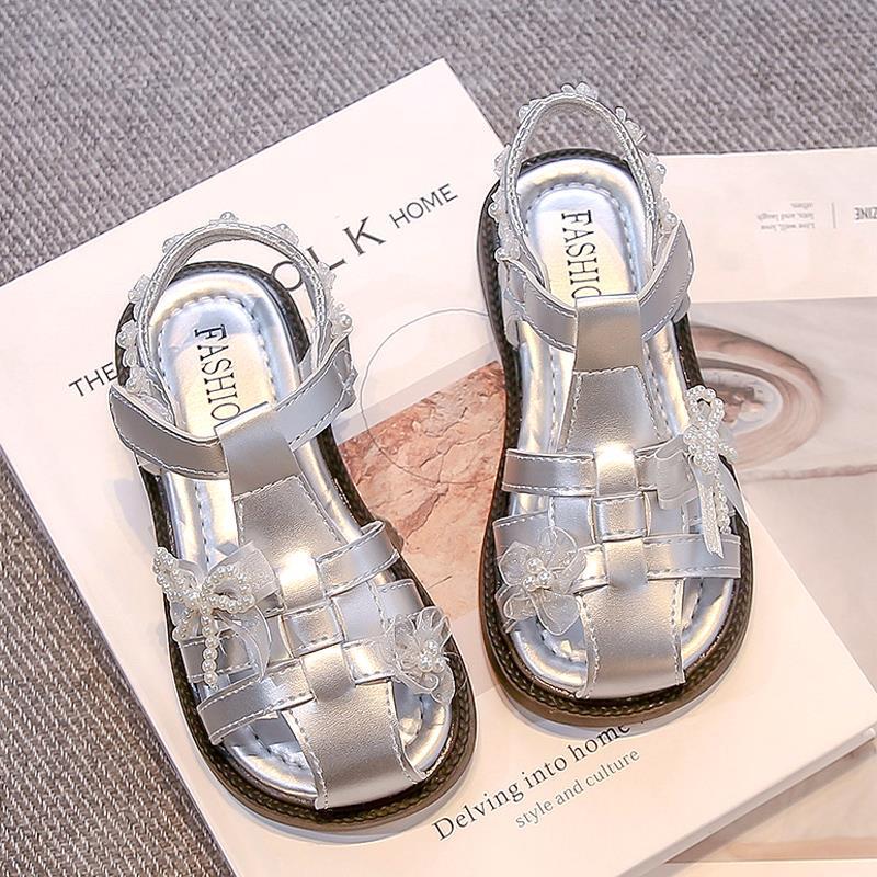 여름 겉옷을위한 소녀 샌들 2025 새로운 부드러운 바닥 Baotou 어린이 공주 신발 소녀 활 패션 샌들