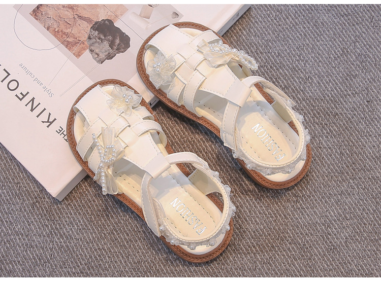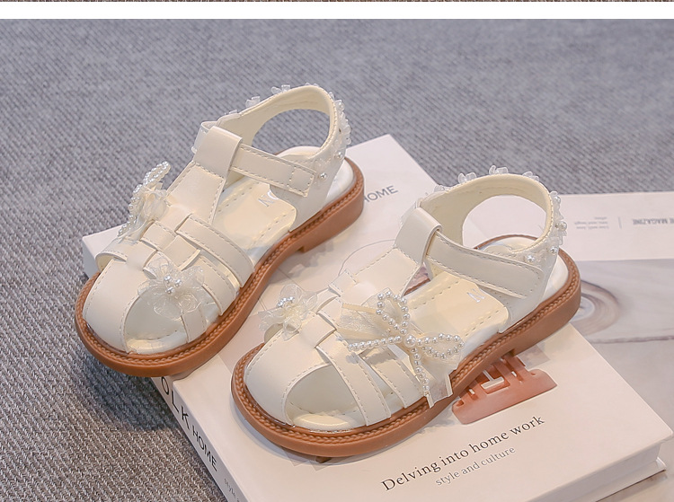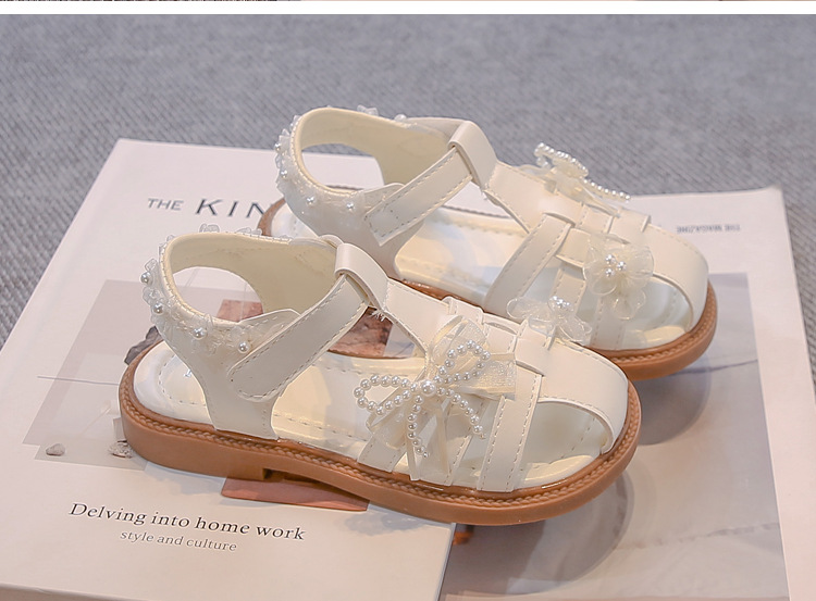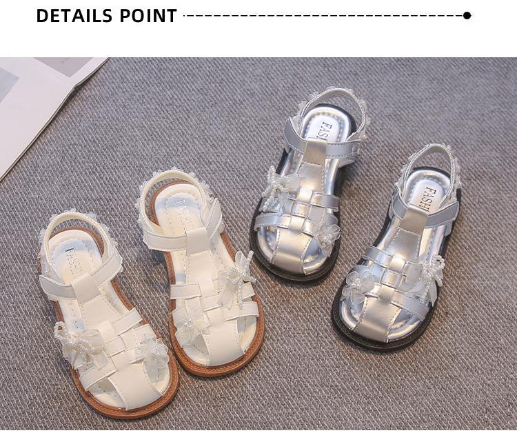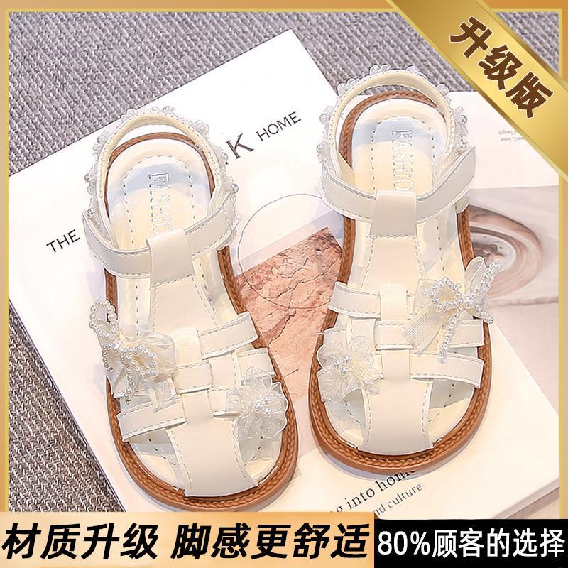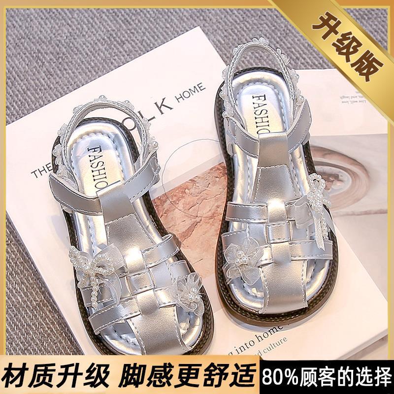 여름 겉옷을위한 소녀 샌들 2025 새로운 부드러운 바닥 Baotou 어린이 공주 신발 소녀 활 패션 샌들스토어 가기
