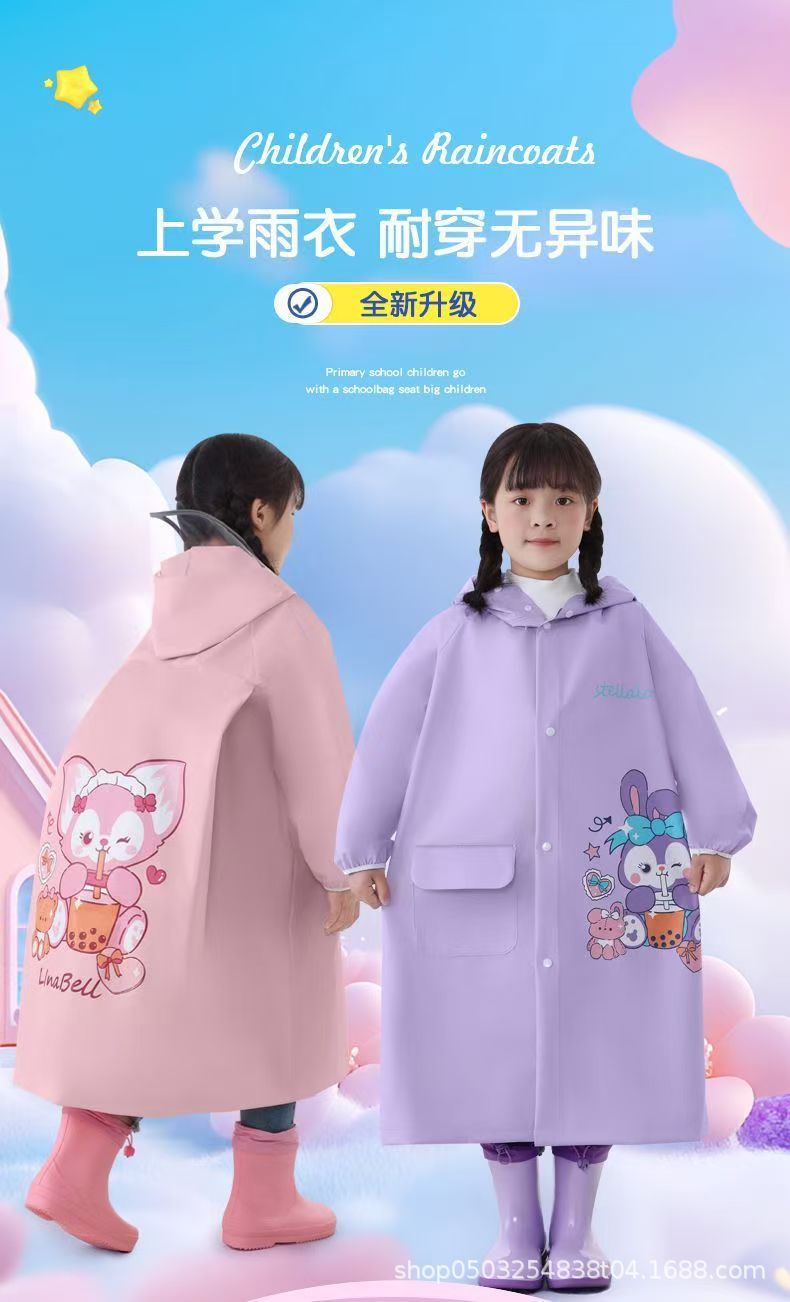 책가방을 들고 학교에 가는 초등학생을 위한 소년 소녀용 아동 비옷 새로운 전신 방수 긴 방수 판초스토어 가기