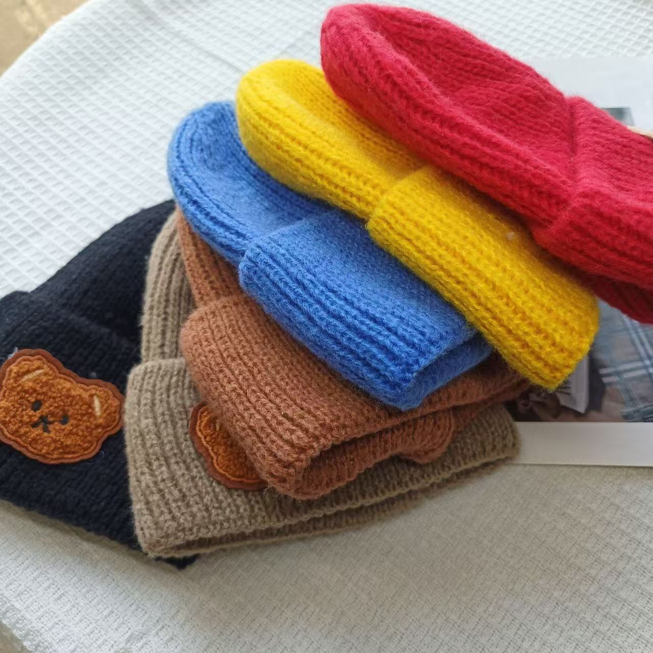어린이 귀여운 곰 솔리드 컬러 모직 모자 여성 2025 새로운 가을, 겨울 따뜻한 귀 보호 다목적 니트 모자스토어 가기