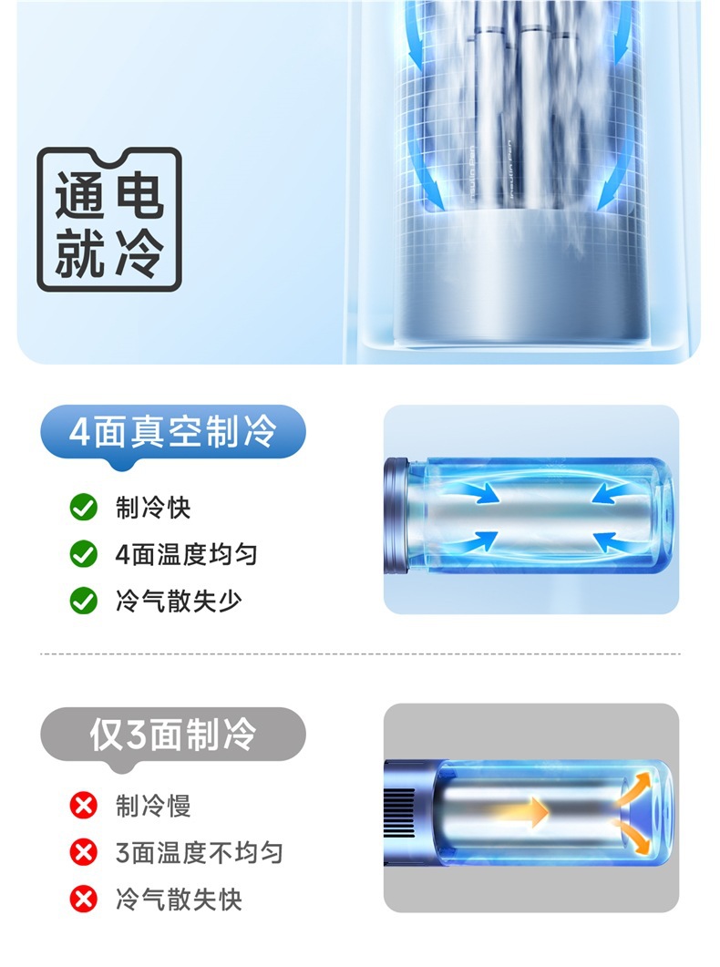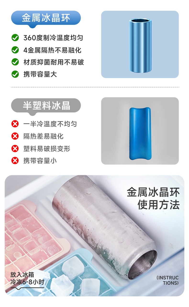 • [라이트 럭셔리 블루 온도 표시 사계절 업그레이드 버전★온도조절] 냉장실 + 금속 아이스링 + 컵커버 3회용