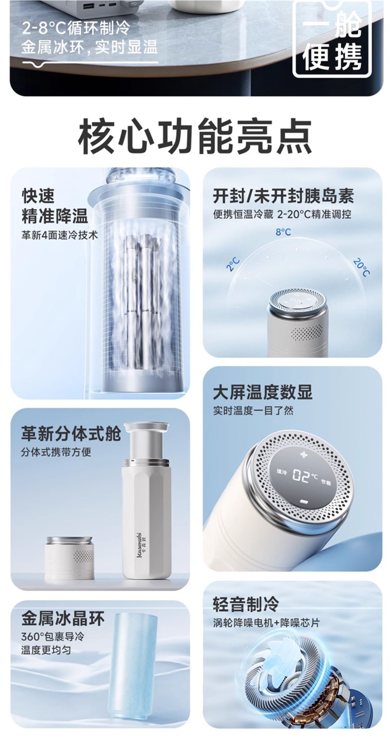 인슐린 냉장 상자 휴대용 소형 냉장고 충전식 보온병 컵 의약품 기숙사 팩 성장 호르몬 기타스토어 가기
