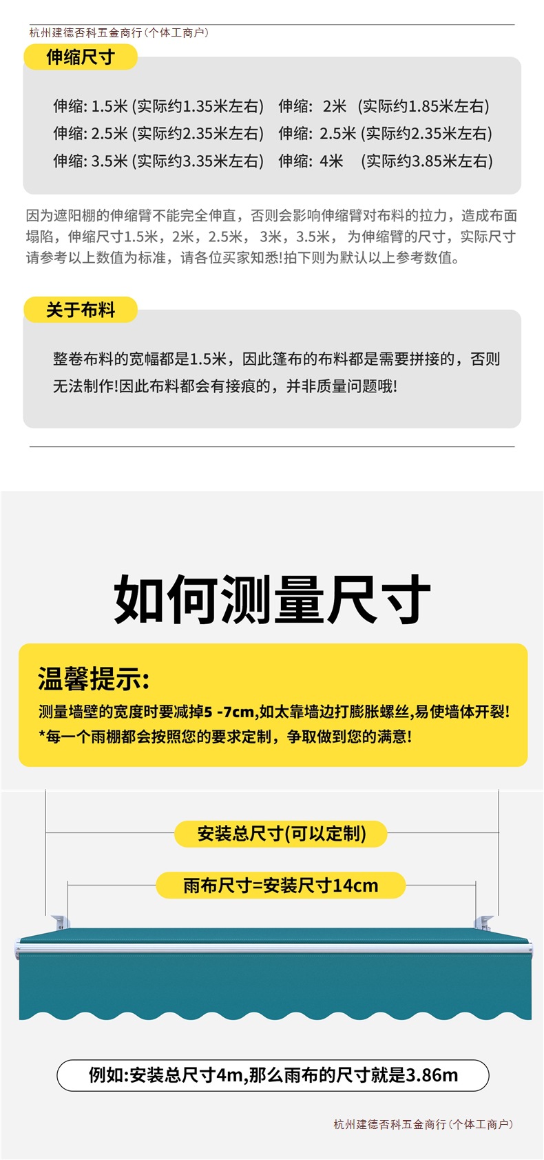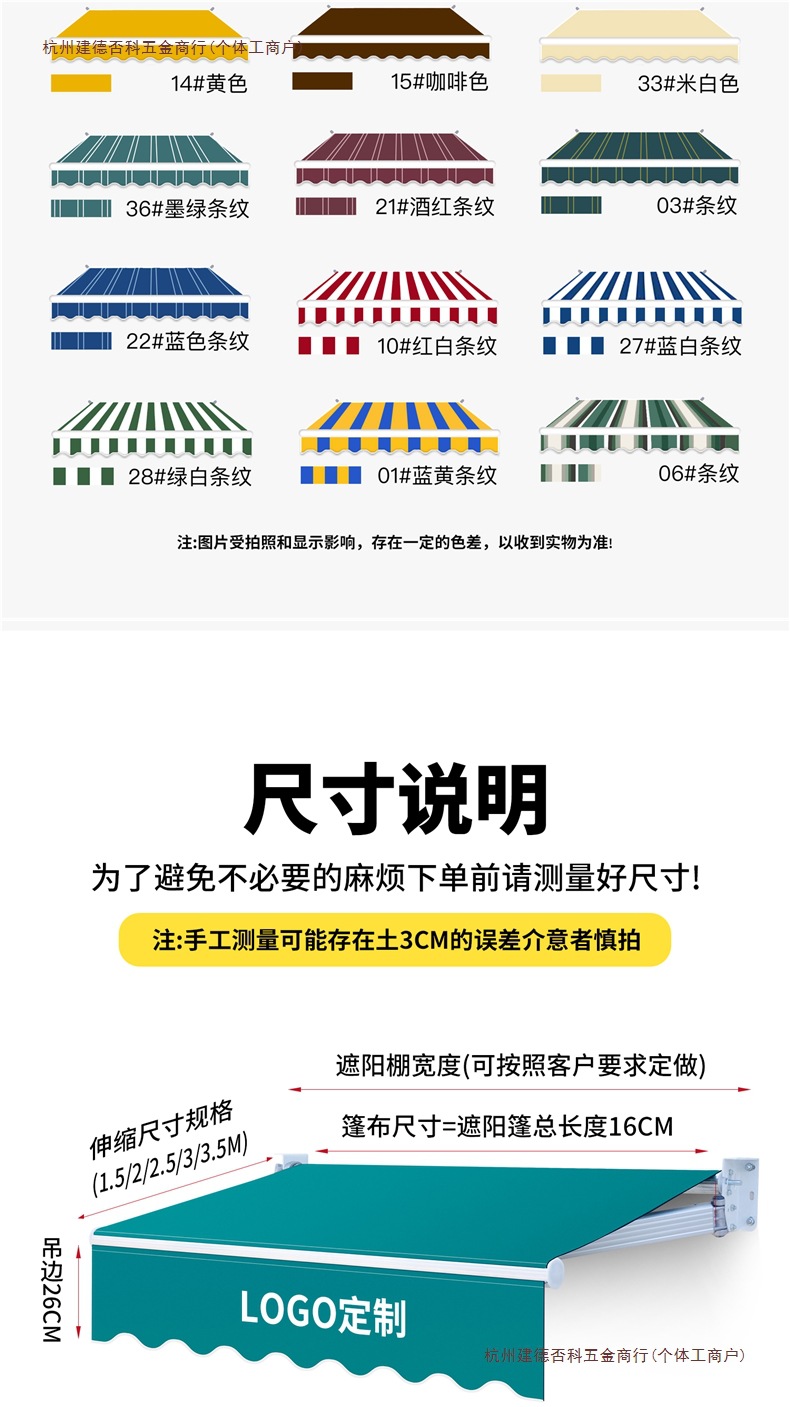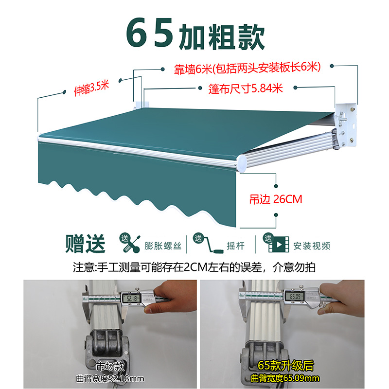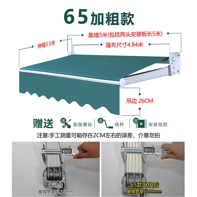 • 업그레이드 모델(벽면 6m 텔레스코픽 2.5m ) 3개의 곡선형 암 65개 모델 [80% 고객 선택] + 초방수 원단