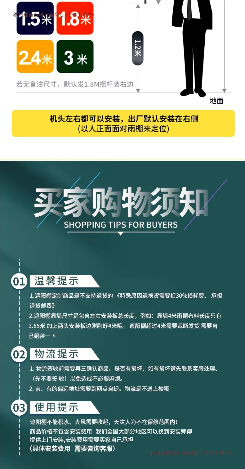 • 두꺼운 모델(벽에 기대어 2.5m 텔레스코픽 1.5m ) 두꺼운 곡선 암 + 높은 방수 원단