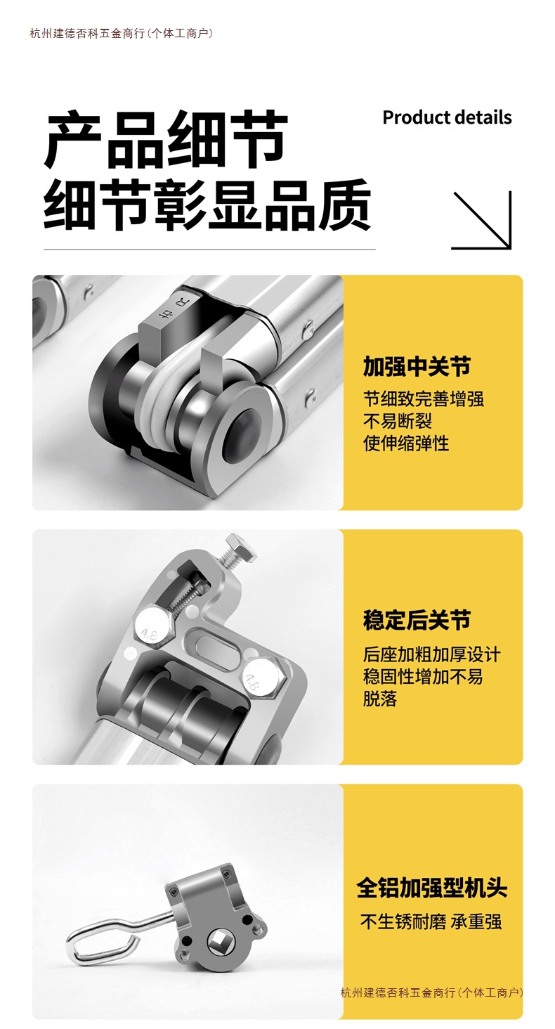 • 두꺼운 모델(벽에 기대어 6.5m 텔레스코픽 1.5m ) 3개의 곡선 암 두꺼운 곡선 암 + 높은 방수 직물
