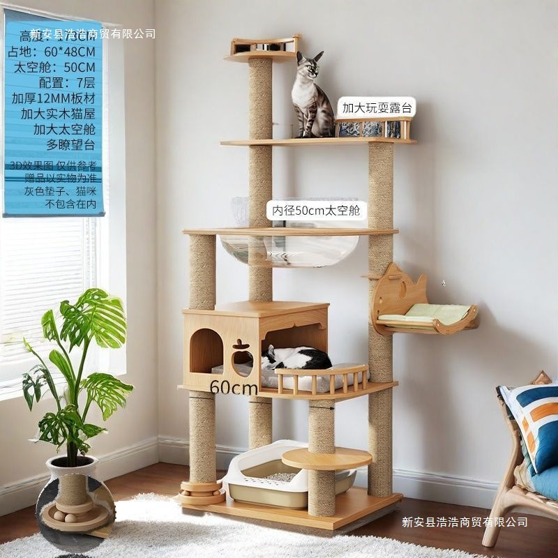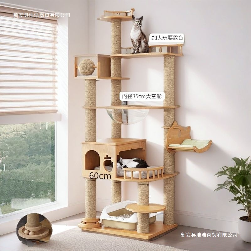 대형 원목 고양이 클라이밍 프레임, 올인원, 사계절 사용 가능, 대형 고양이 스크래치 보드, 우주 캡슐, 뚱뚱한 고양이 장난감 스크래치 포스트, 내마모성스토어 가기