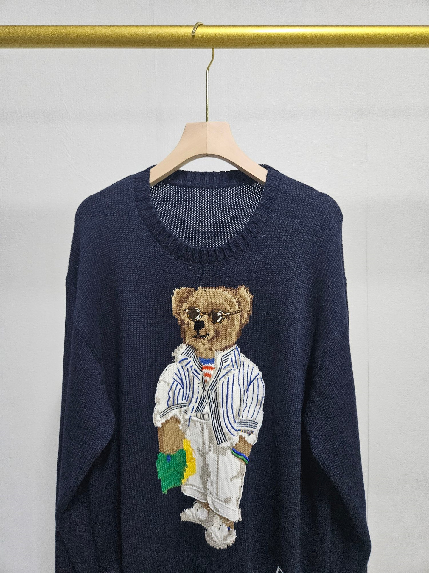 2025 새로운 가을, 겨울 코튼 헤비 듀티 만화 곰 라운드 넥 대학 연령 감소 여성용 다용도 스웨터스토어 가기