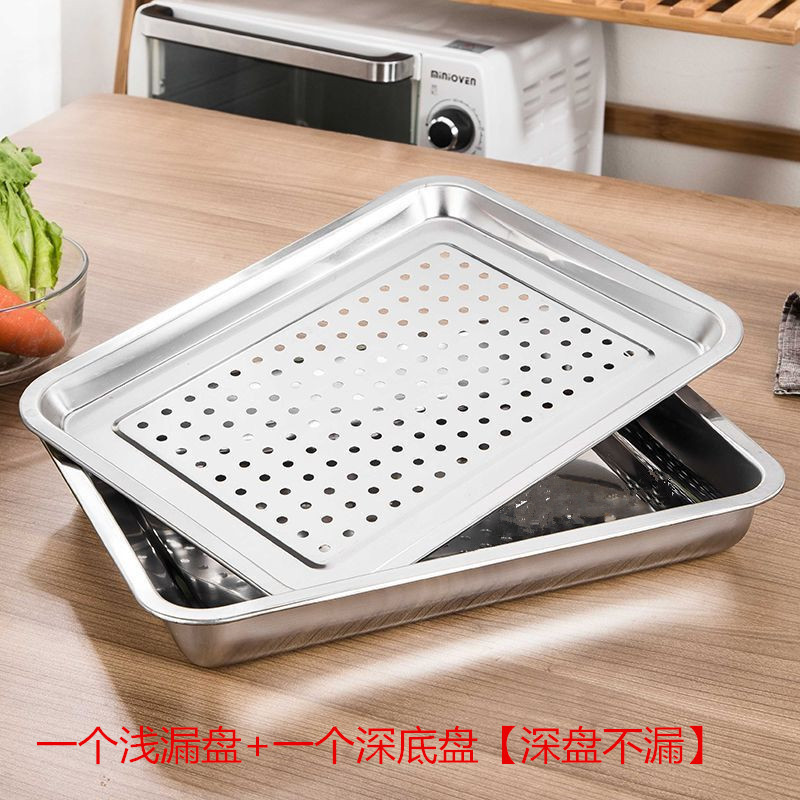 스테인리스 트레이, 배수 트레이, 튀김 트레이, 오일 컨트롤 트레이, 찐빵 트레이, 구멍이 있는 천공 사각 트레이, Baihanzhe스토어 가기