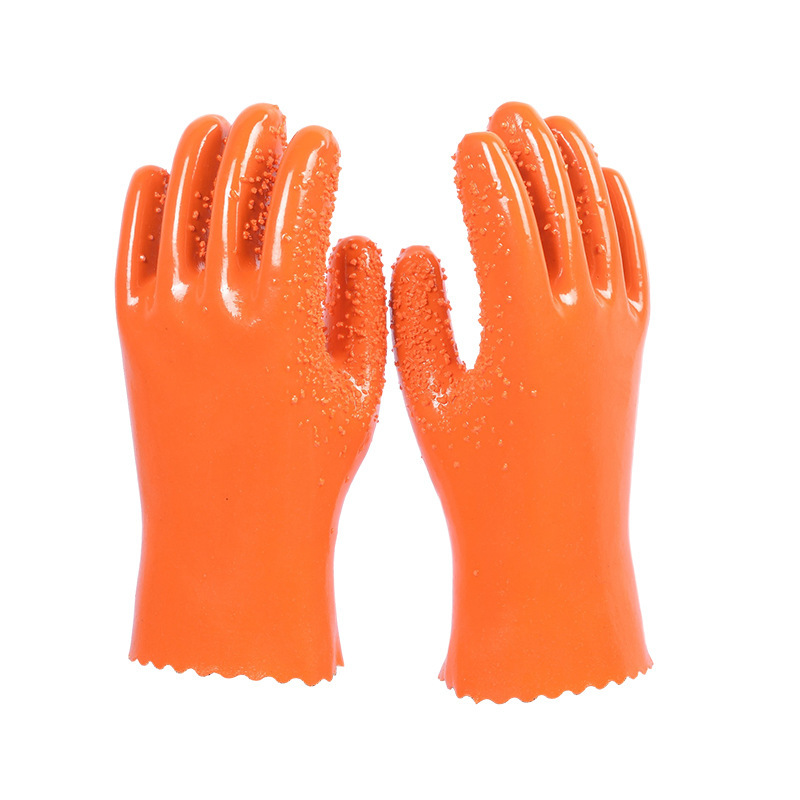 Evergrande 688 미끄럼 방지 장갑 플라스틱 미끄럼 방지 고무로 코팅된 노동 보호 장갑 도매 오렌지색 고무로 코팅된 노동 보호 장갑