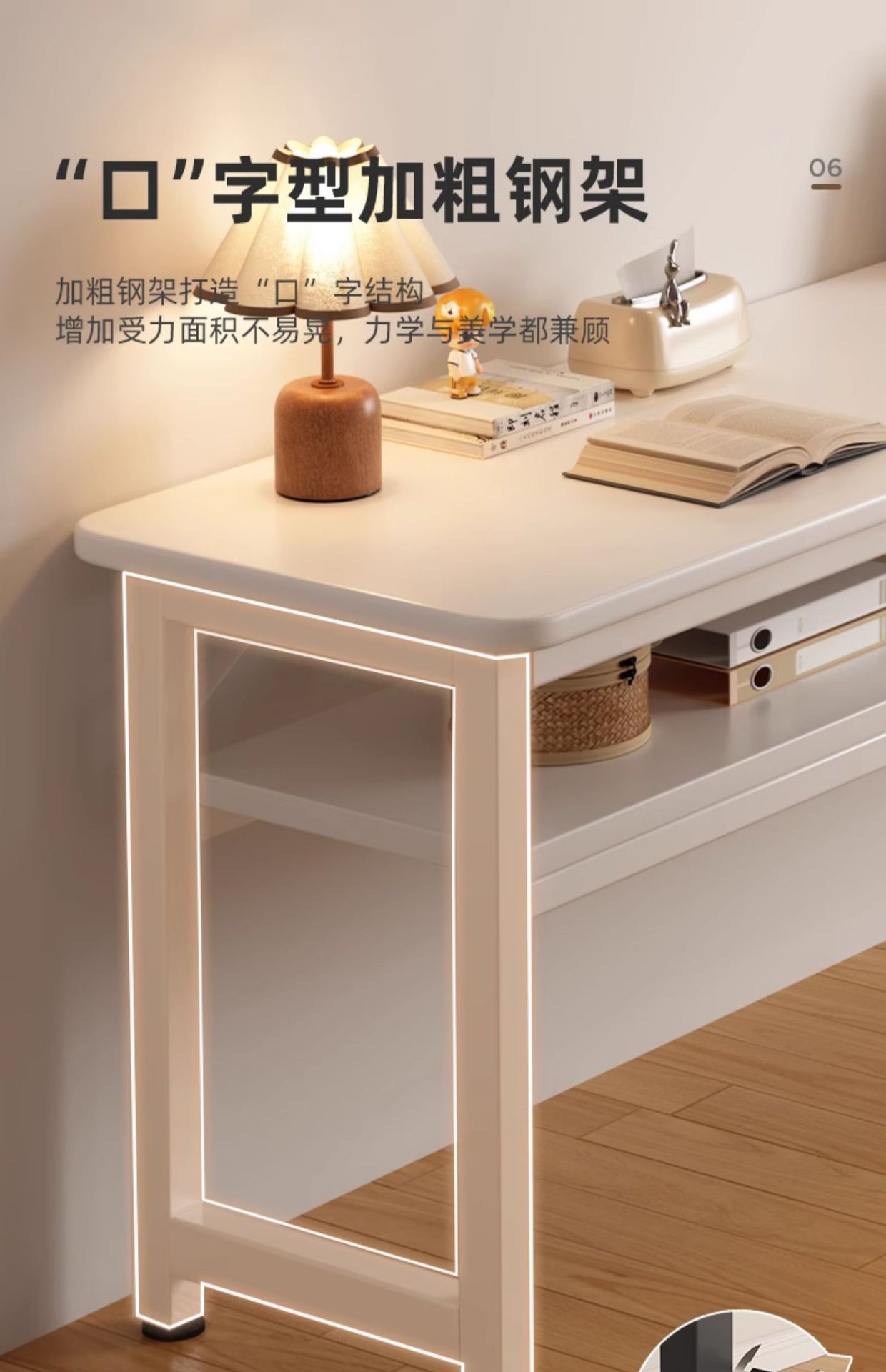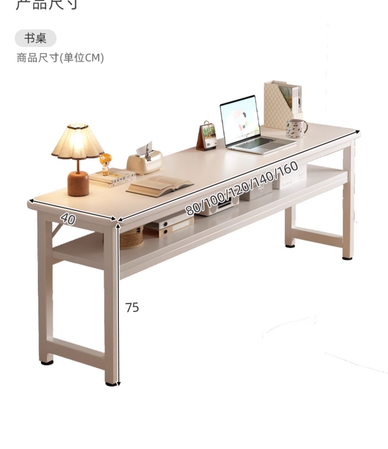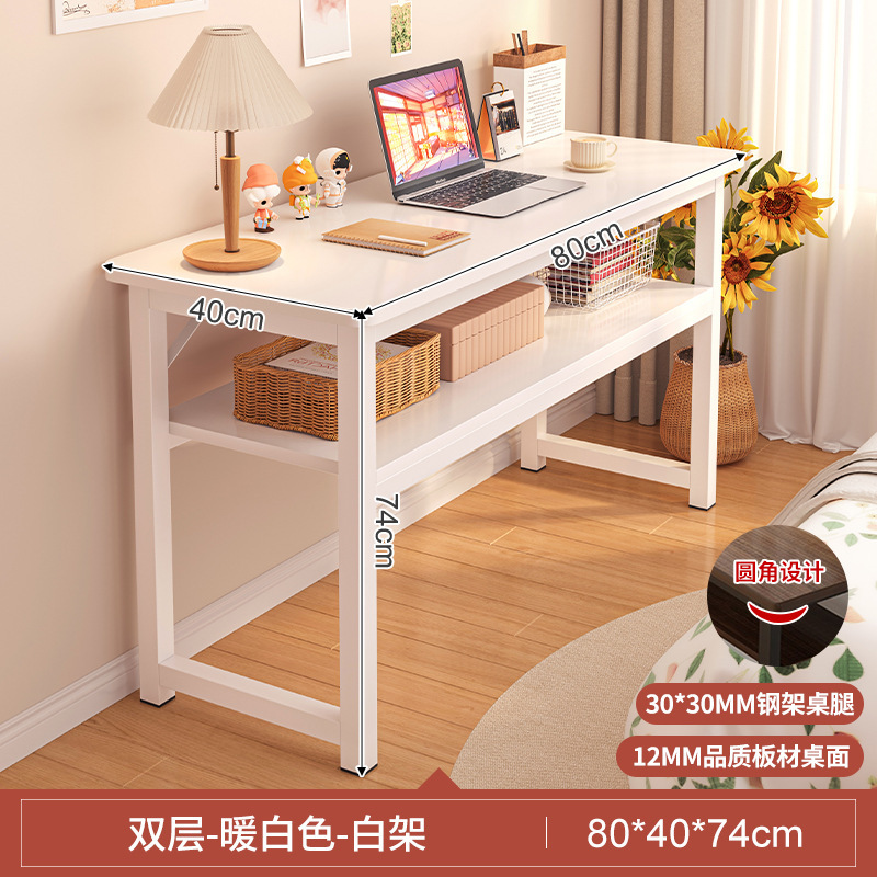 • [업그레이드 된 두꺼운 철제 프레임과 두꺼운 데스크탑] 더블 레이어 따뜻한 흰색 80CM [안전한 둥근 모서리] 두 배의 내하중