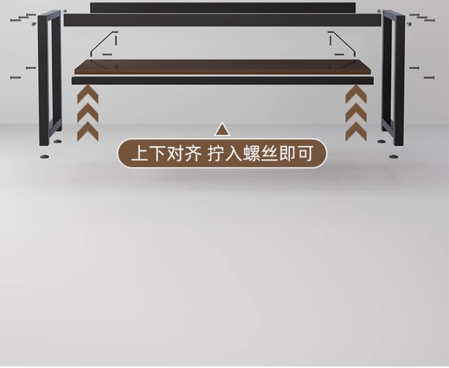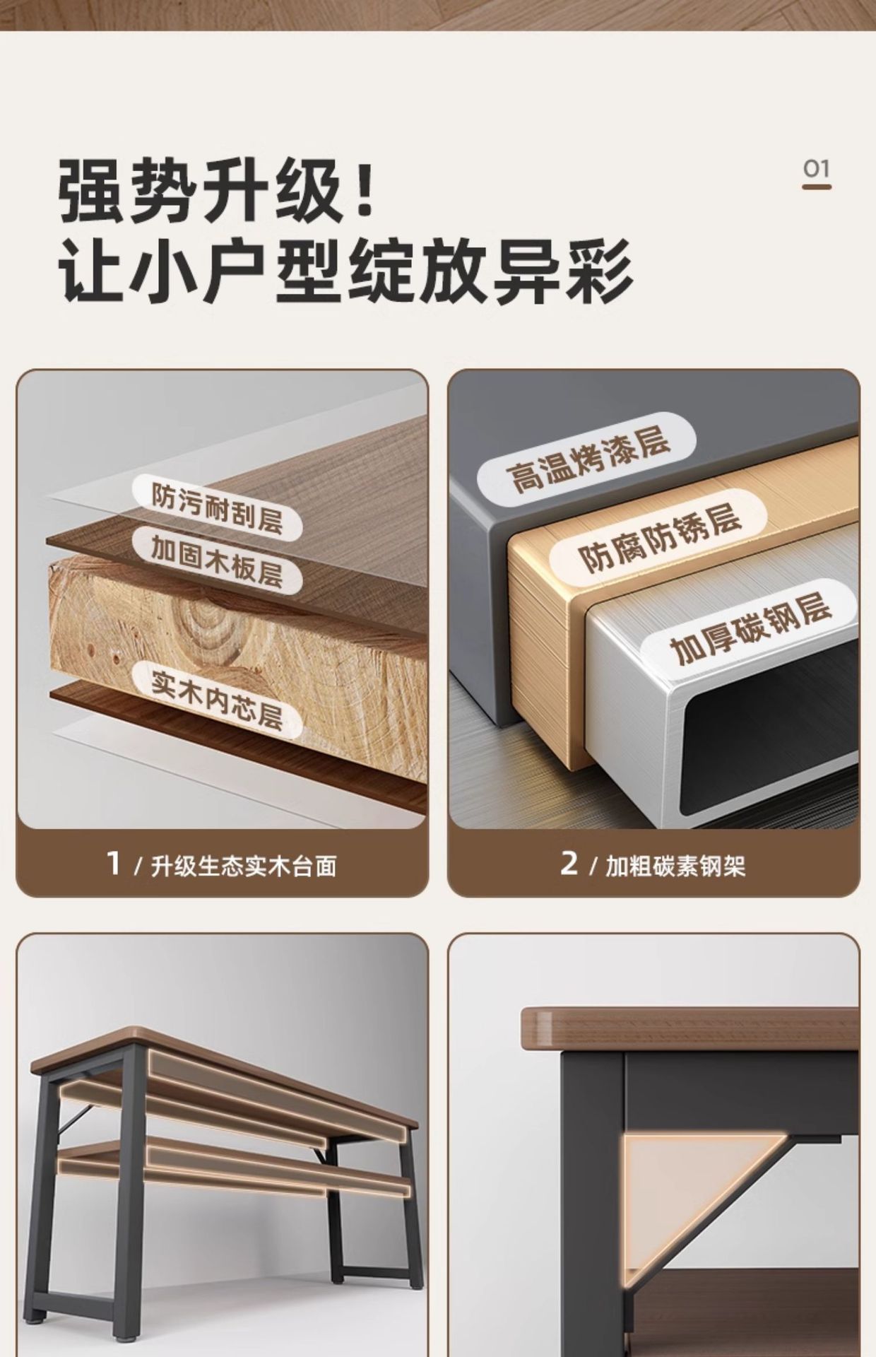 • [업그레이드 된 두꺼운 철제 프레임과 두꺼워진 데스크탑] 더블 레이어 브러시드 블랙 오크 컬러 100CM [안전한 둥근 모서리] 두 배의 내하중