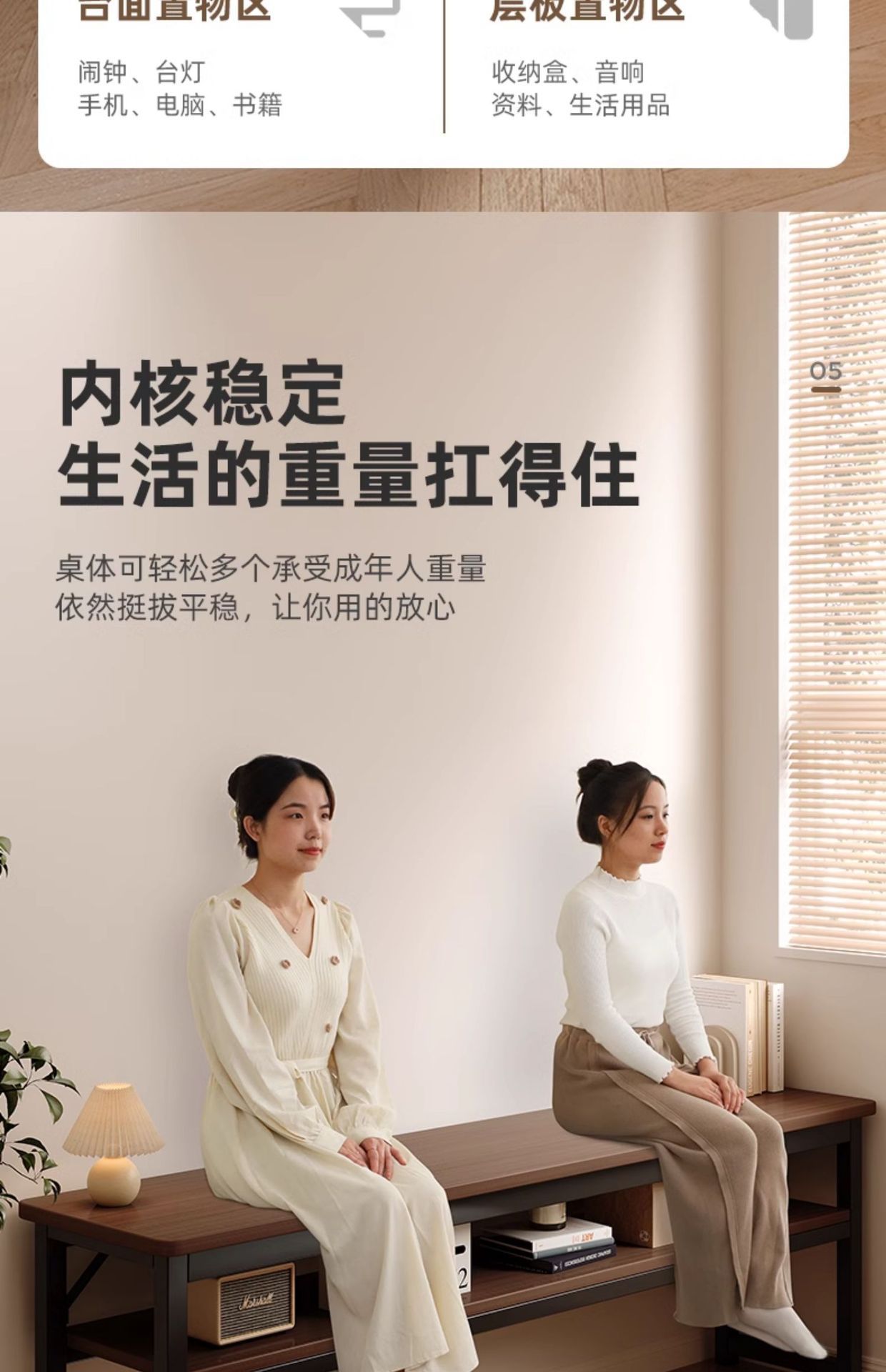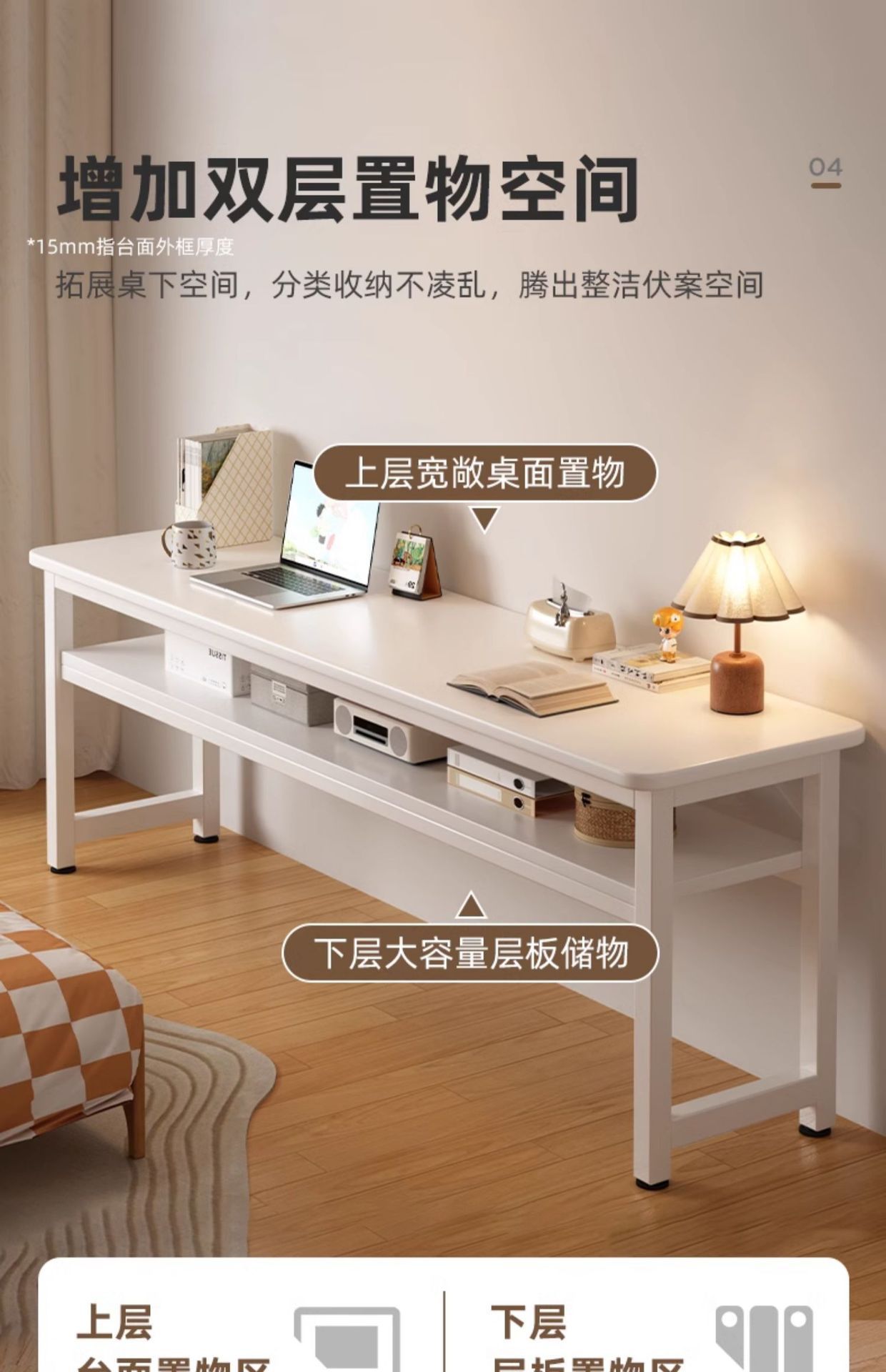 • [업그레이드 된 두꺼운 철제 프레임과 두꺼운 데스크탑] 더블 레이어 따뜻한 흰색 100CM [안전한 둥근 모서리] 두 배의 내하중