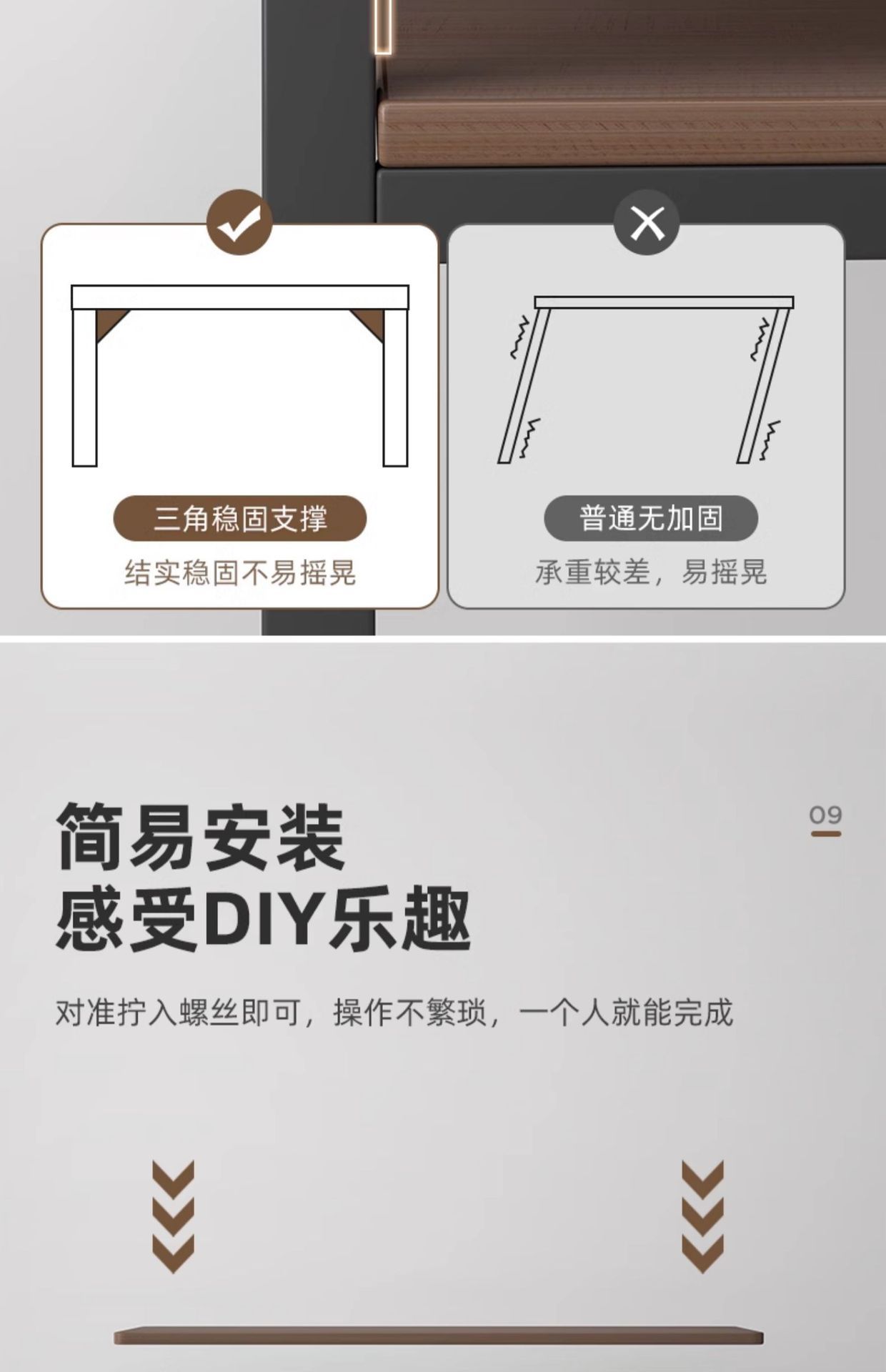 • [단층] 브러시드 블랙오크 컬러 80CM [안전한 둥근 모서리]