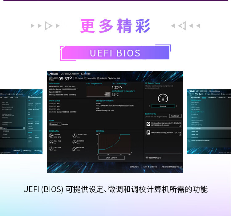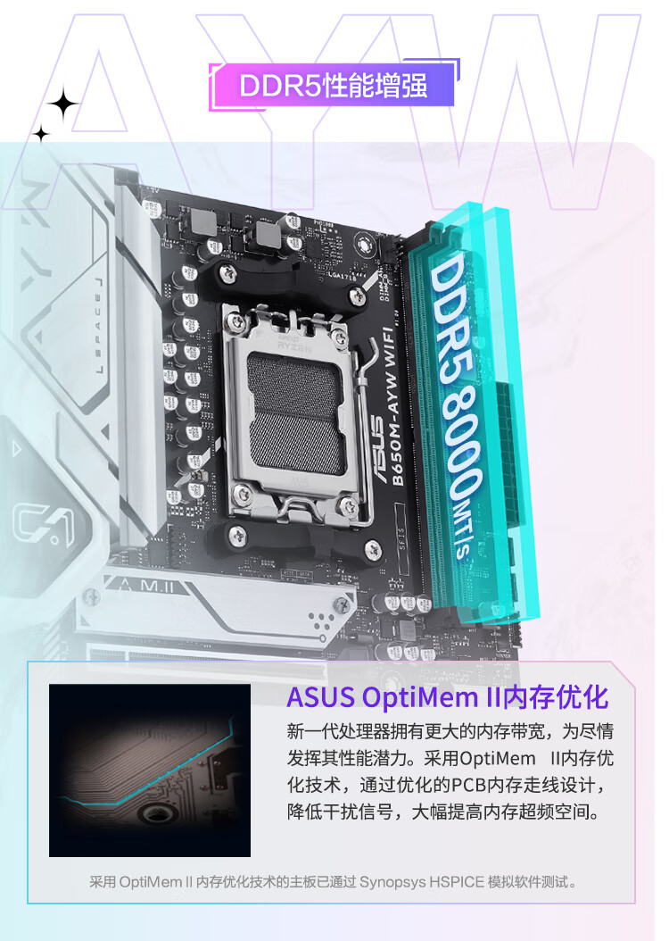 超频与优化技术:支持 AMD EXPO™超频技术,配合 OptiMem II 内存优化技术,能优化内存信号走线,减少信号干扰,既提升了高频 DDR5 内存的兼容性,也进一步拓宽了内存超频空间,适配追求高频内存性能的用户需求。