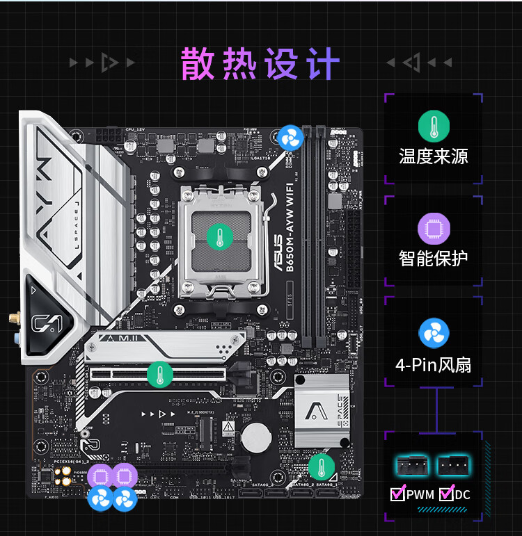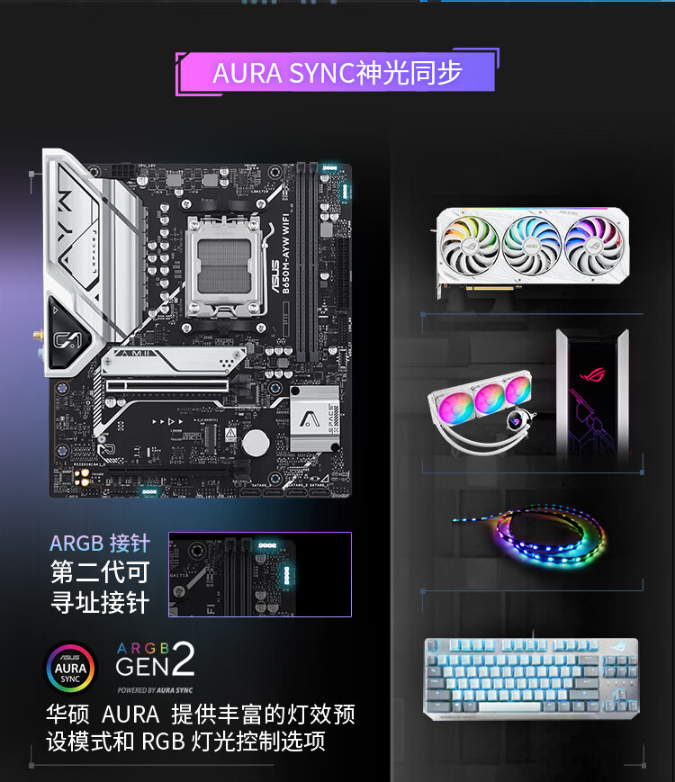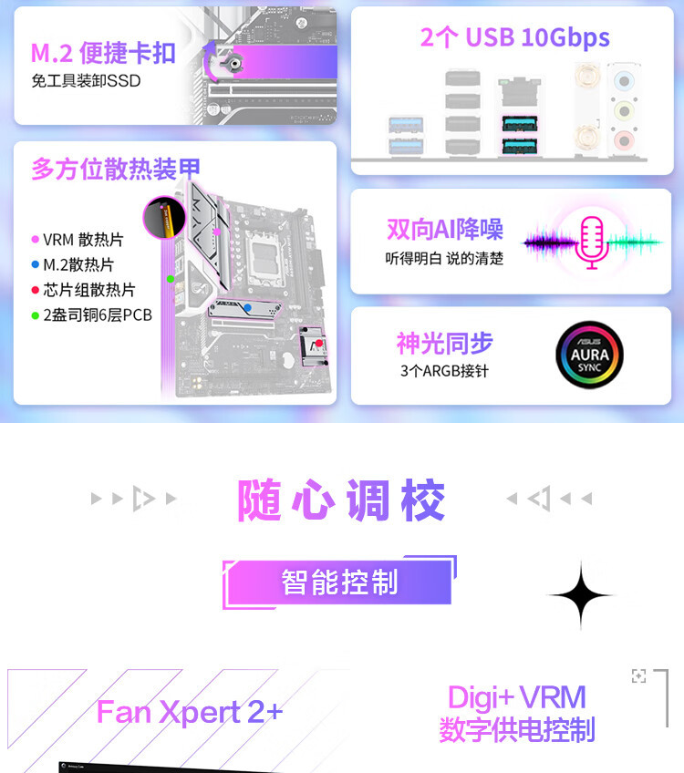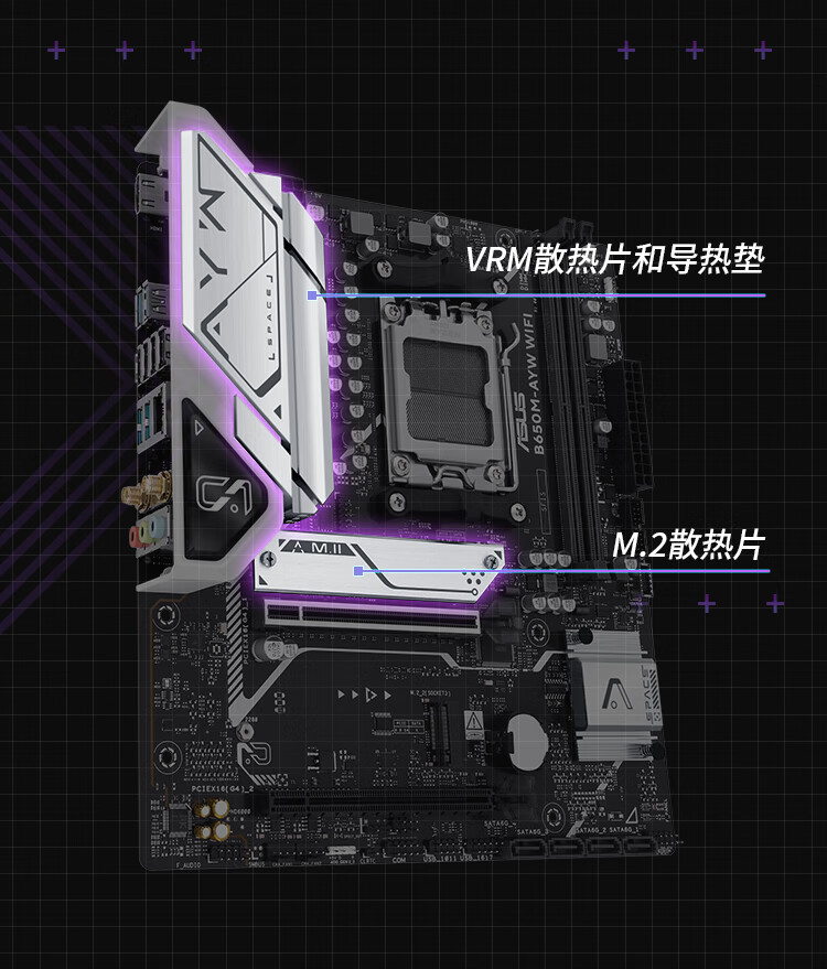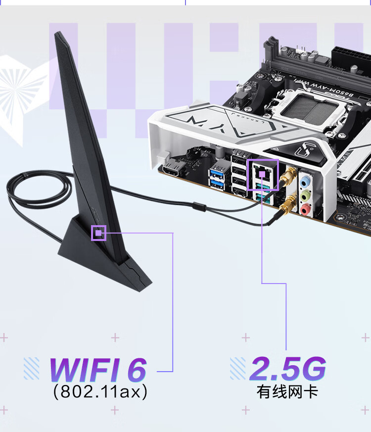 | 芯片组 | 搭载 AMD B650 芯片组,针对 AM5 平台的 CPU、内存、存储等硬件协同做了专项优化,保障各硬件高效配合运行 |