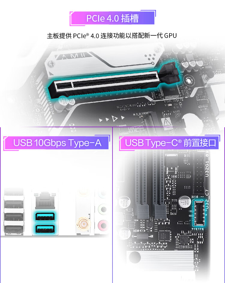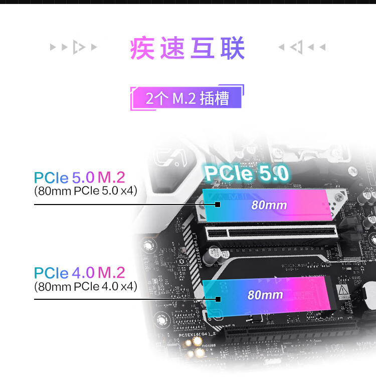 | 存储接口 | 拥有 2 个 M.2 Key M 插槽和 4 个 SATA 6Gb/s 接口;搭配锐龙 9000/7000 系列 CPU 时,第一个 M.2 插槽支持 PCIe 5.0 x4 模式,第二个支持 PCIe 4.0 x4 模式,搭配 8000 系列 CPU 时两个插槽均为 PCIe 4.0 相关模式,适配不同规格的高速固态硬盘 |