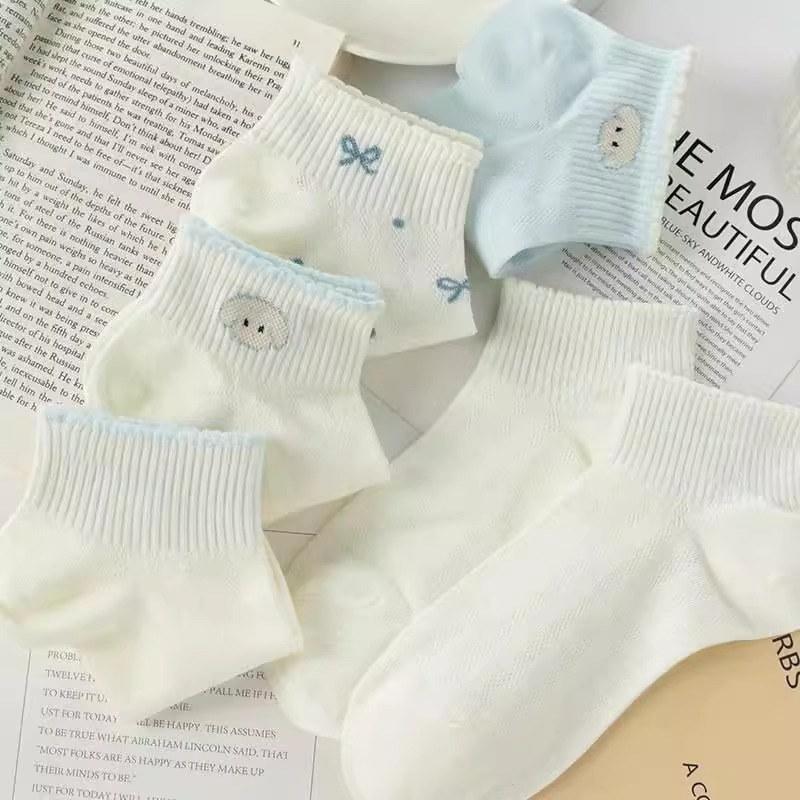 하늘색 나비 네트 양말 어린이 양말 여름 얇은 통기성 유백색 얕은 입 짧은 튜브 소녀 아기 양말스토어 가기