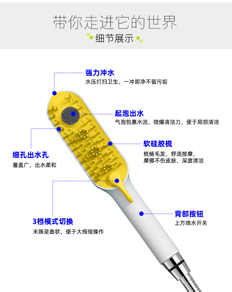 애완동물 목욕용 특수 샤워기, 마사지 기능, 거품 생성, 털갈이 기능 내장, 강아지 다기능 케어 샤워스토어 가기